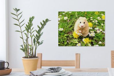 • Leinwandbilder - 40x30 cm - Hamster - Blumen - Gras (Gr. 40x30 cm)