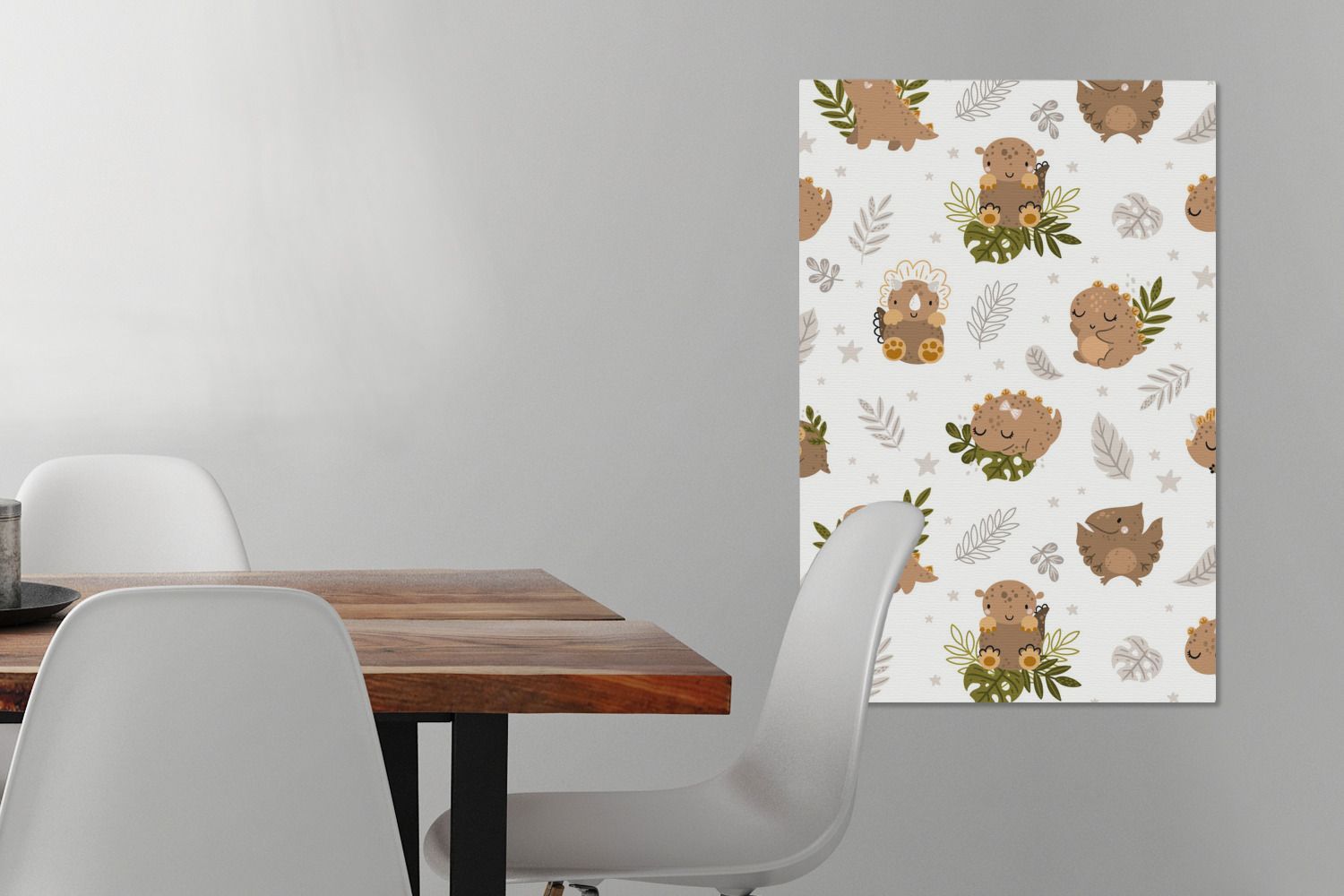 Leinwandbilder - 40x60 cm - Muster - Dinosaurier - Blätter (Gr. 40x60 cm)