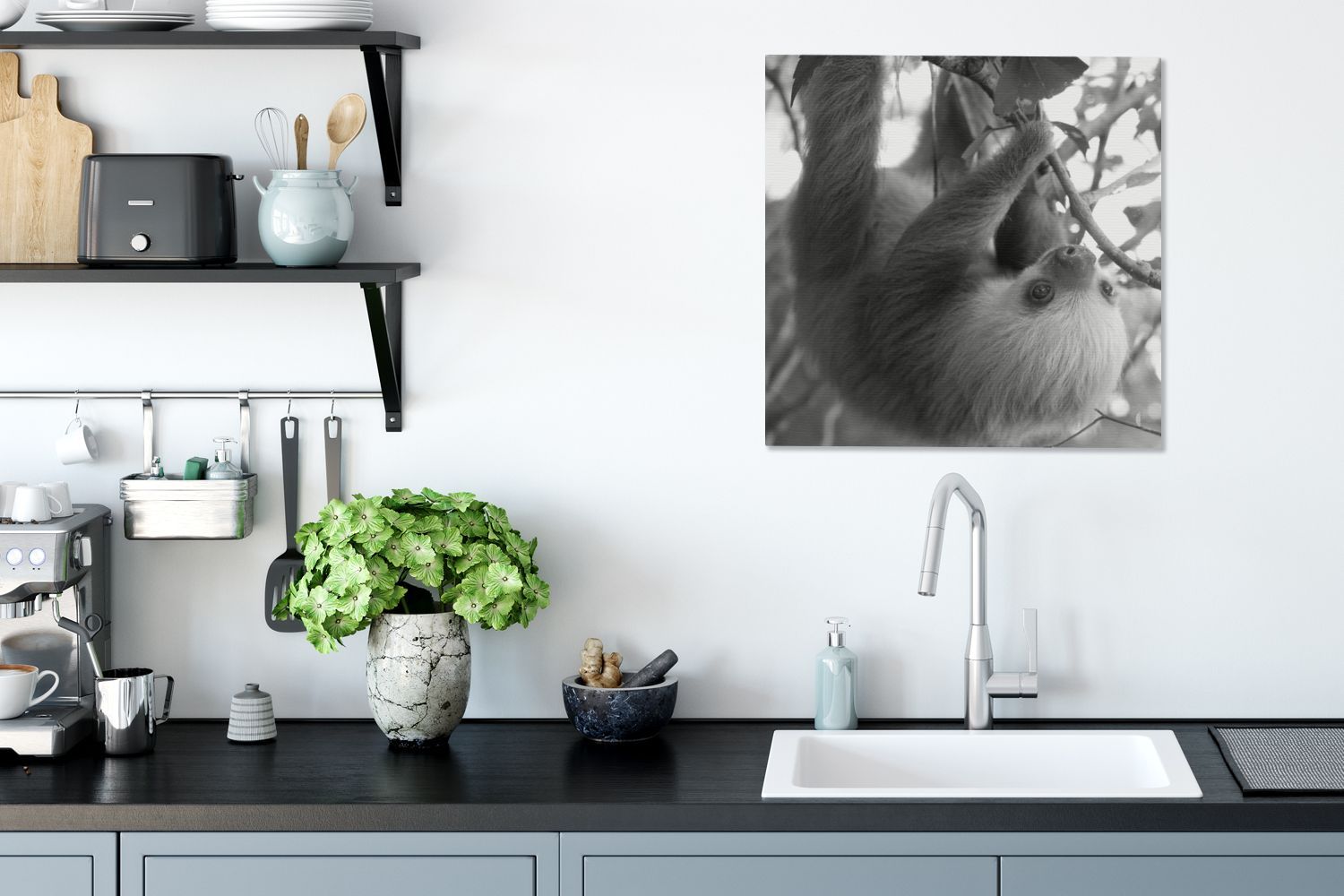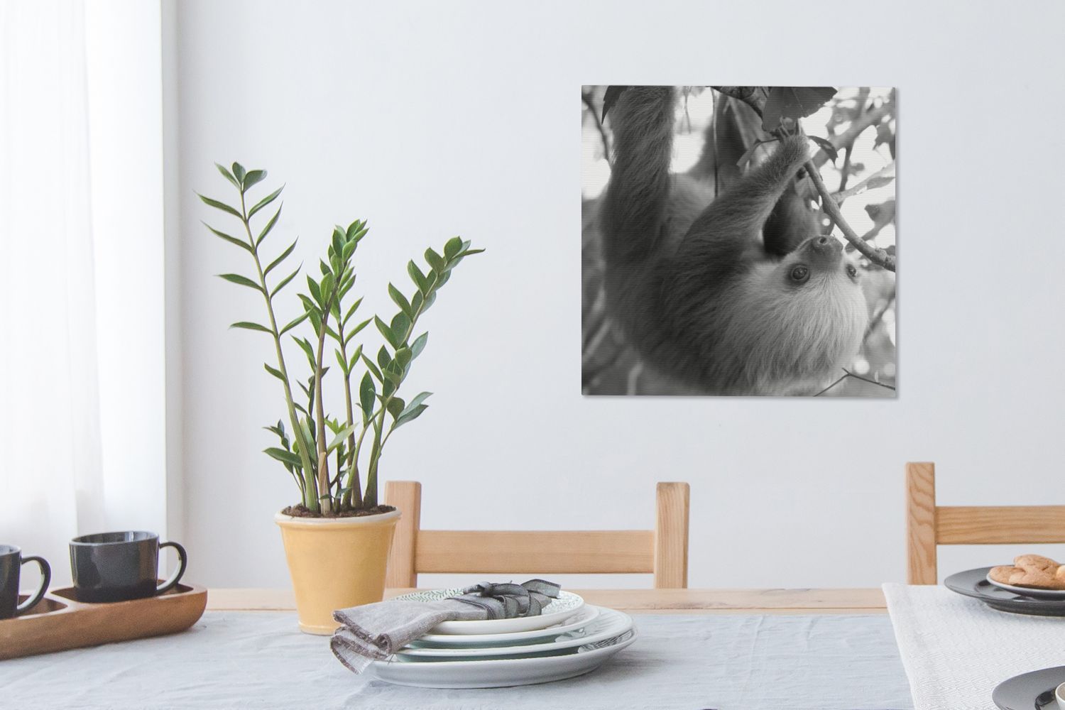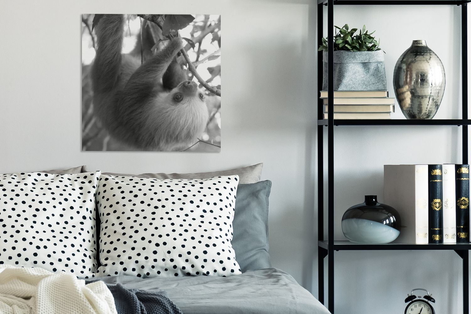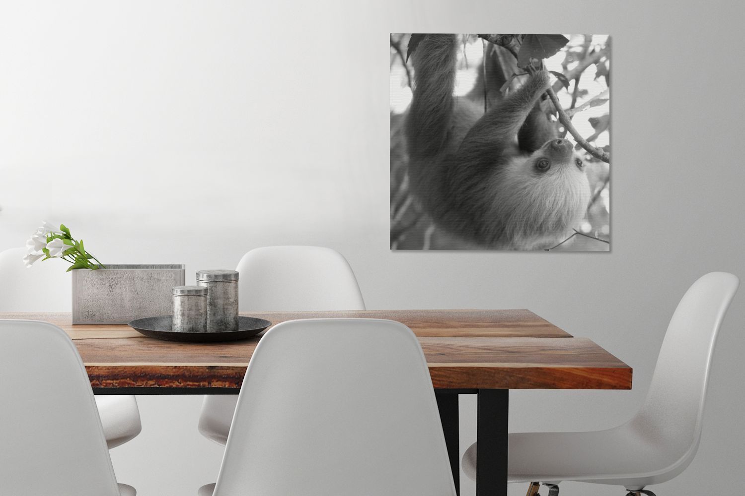 Leinwandbilder - 50x50 cm - Baby-Faultier im Regenwald von Costa Rica in schwarz und
