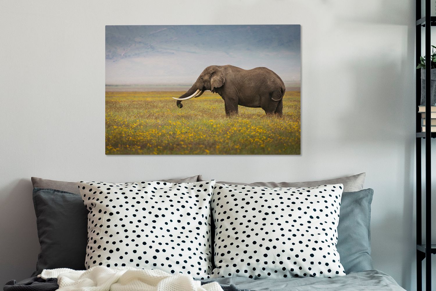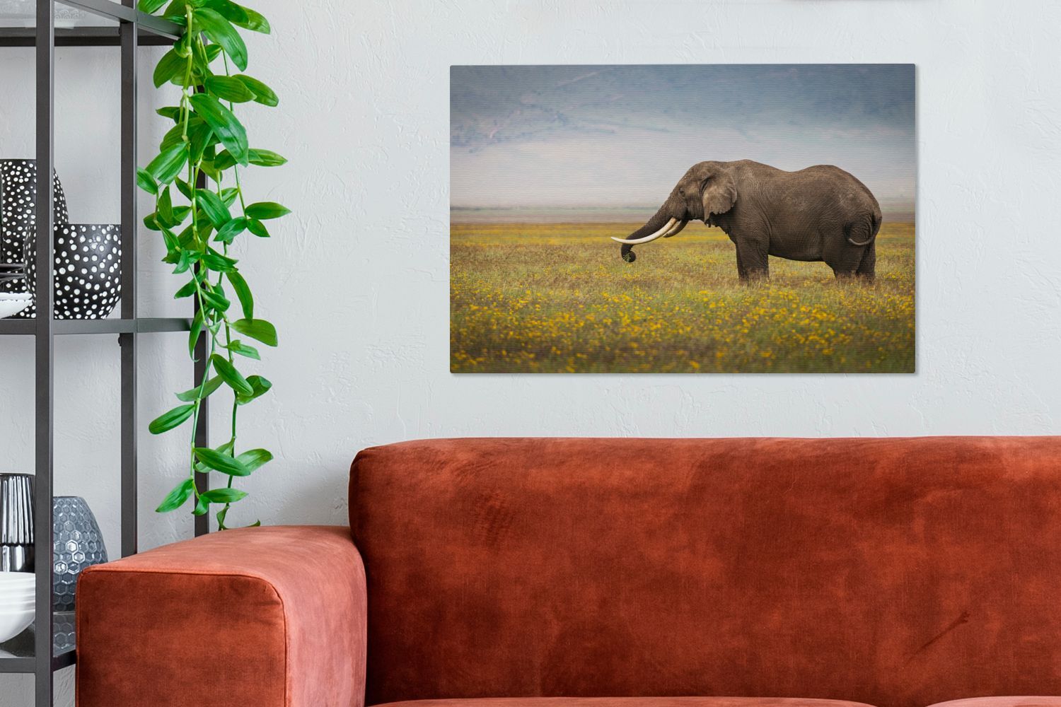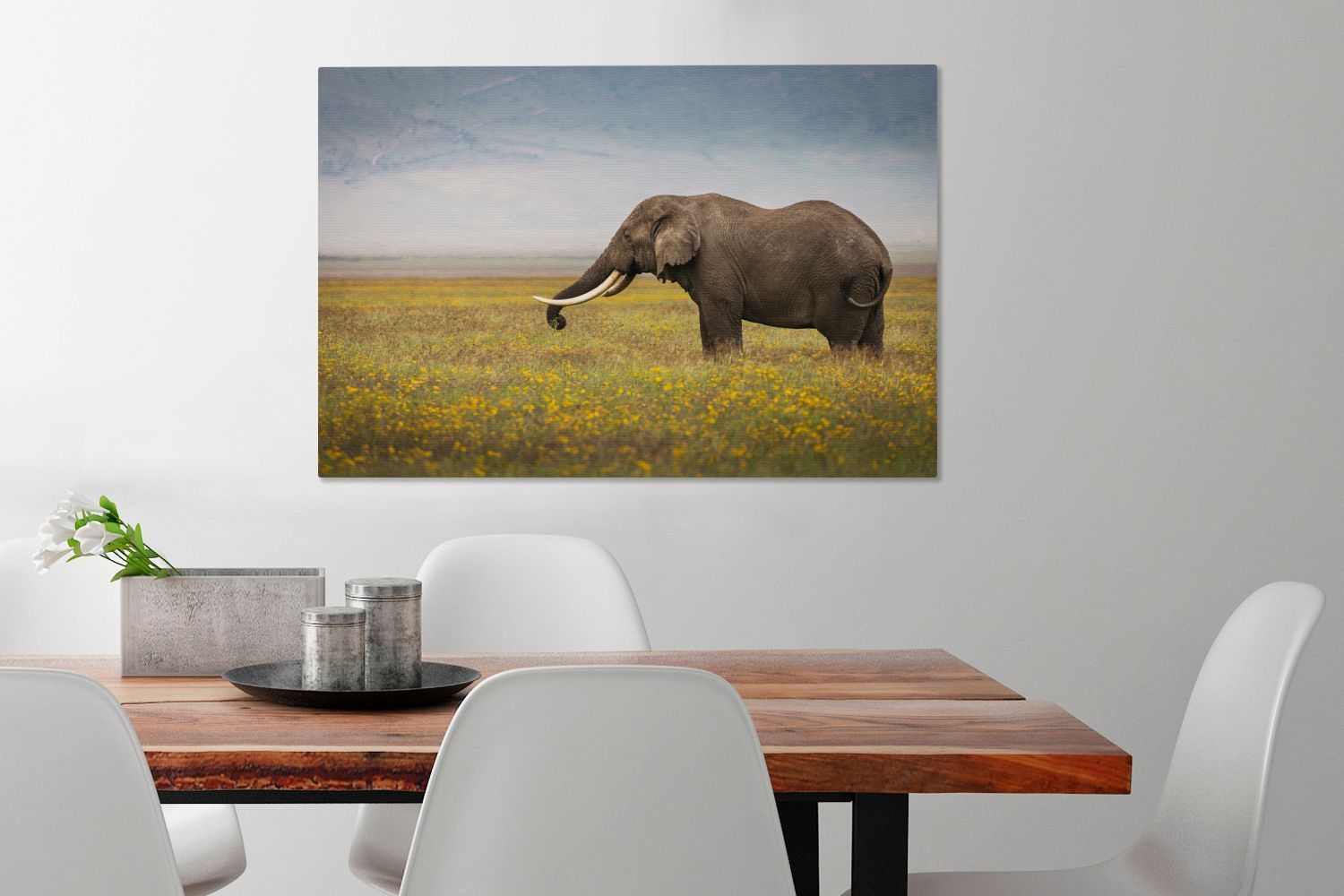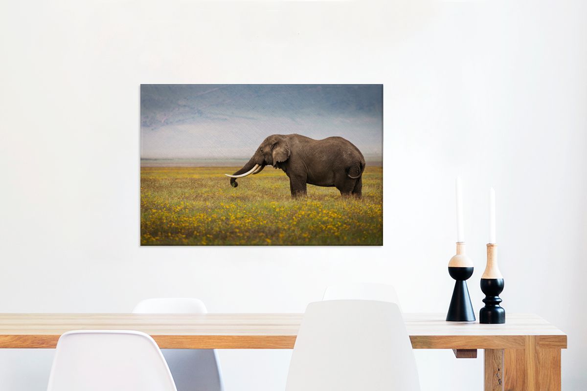 Leinwandbilder - 60x40 cm - Weidender Elefant in der Natur Afrikas (Gr. 60x40 cm)