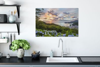 • Leinwandbilder - 60x40 cm - Meerblick und Hortensien (Gr. 60x40 cm)