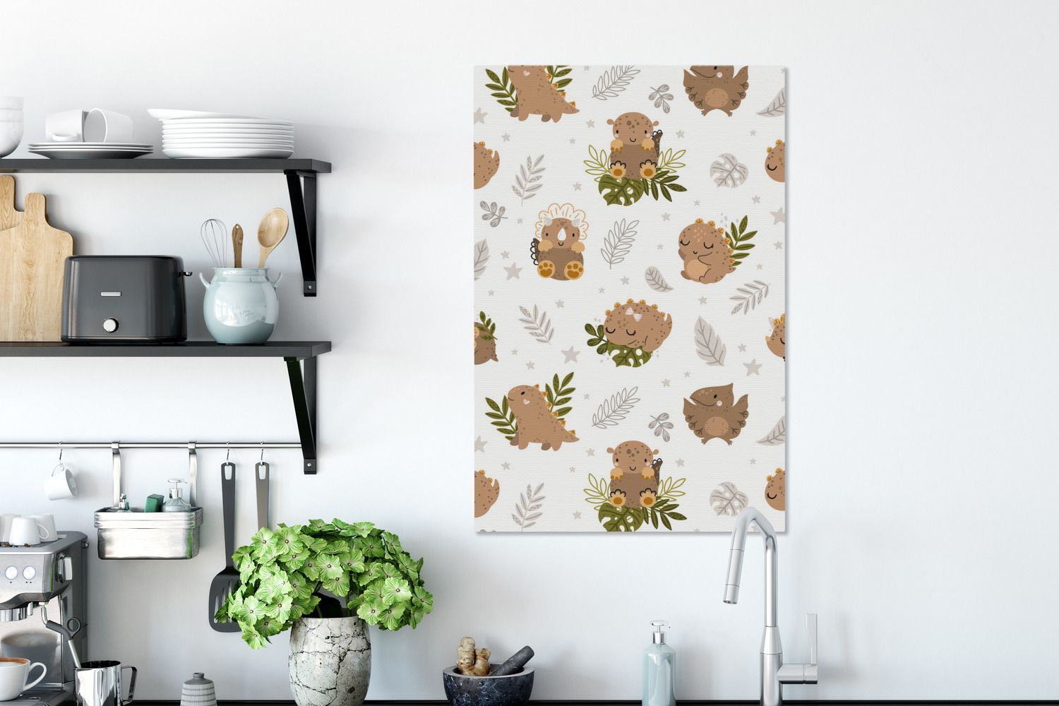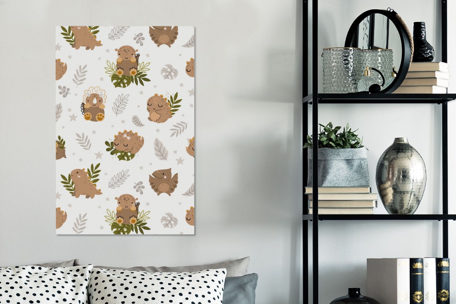 Leinwandbilder - 60x90 cm - Muster - Dinosaurier - Blätter (Gr. 60x90 cm)