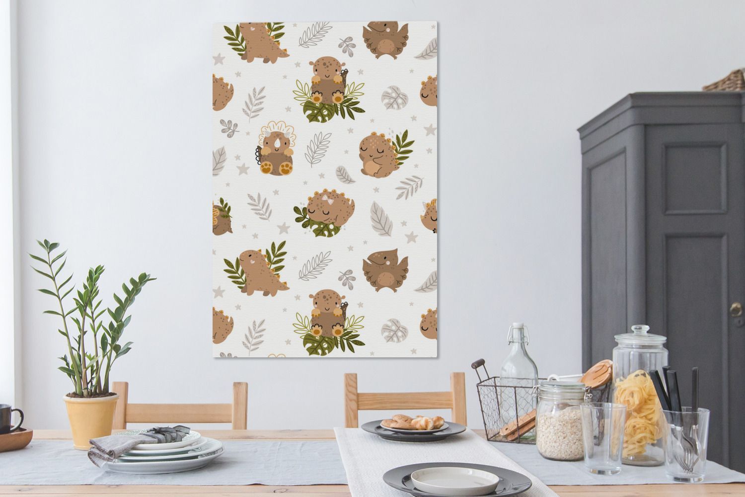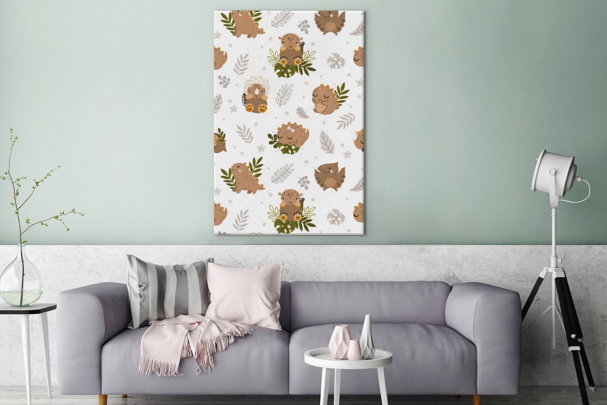 Leinwandbilder - 80x120 cm - Muster - Dinosaurier - Blätter (Gr. 80x120 cm)