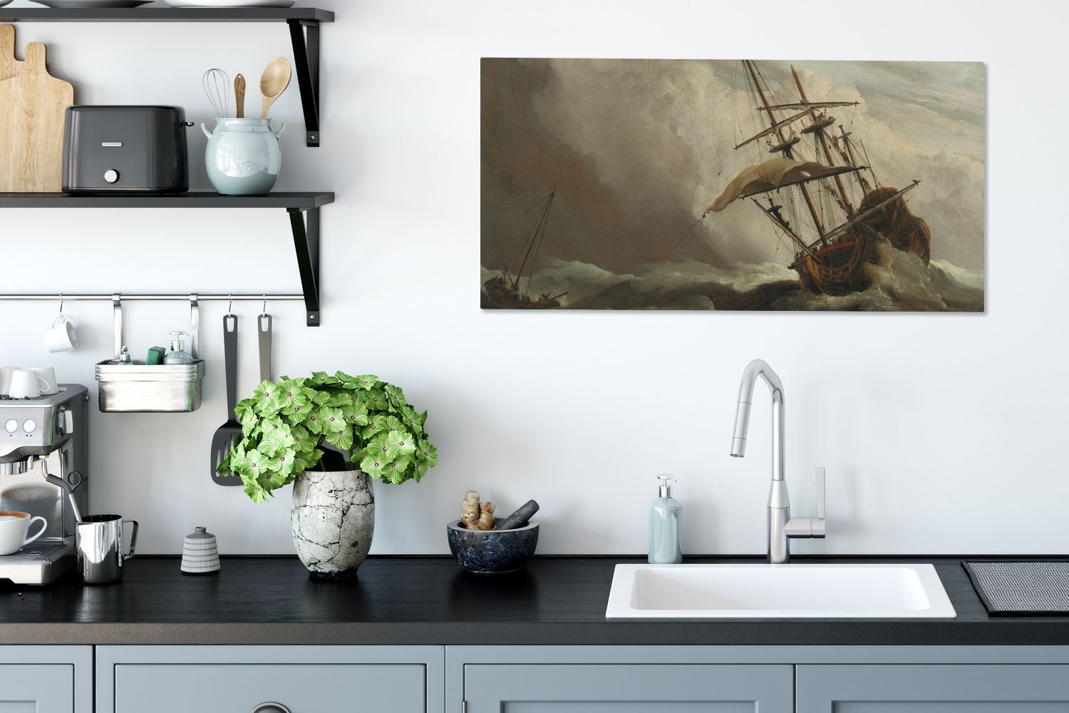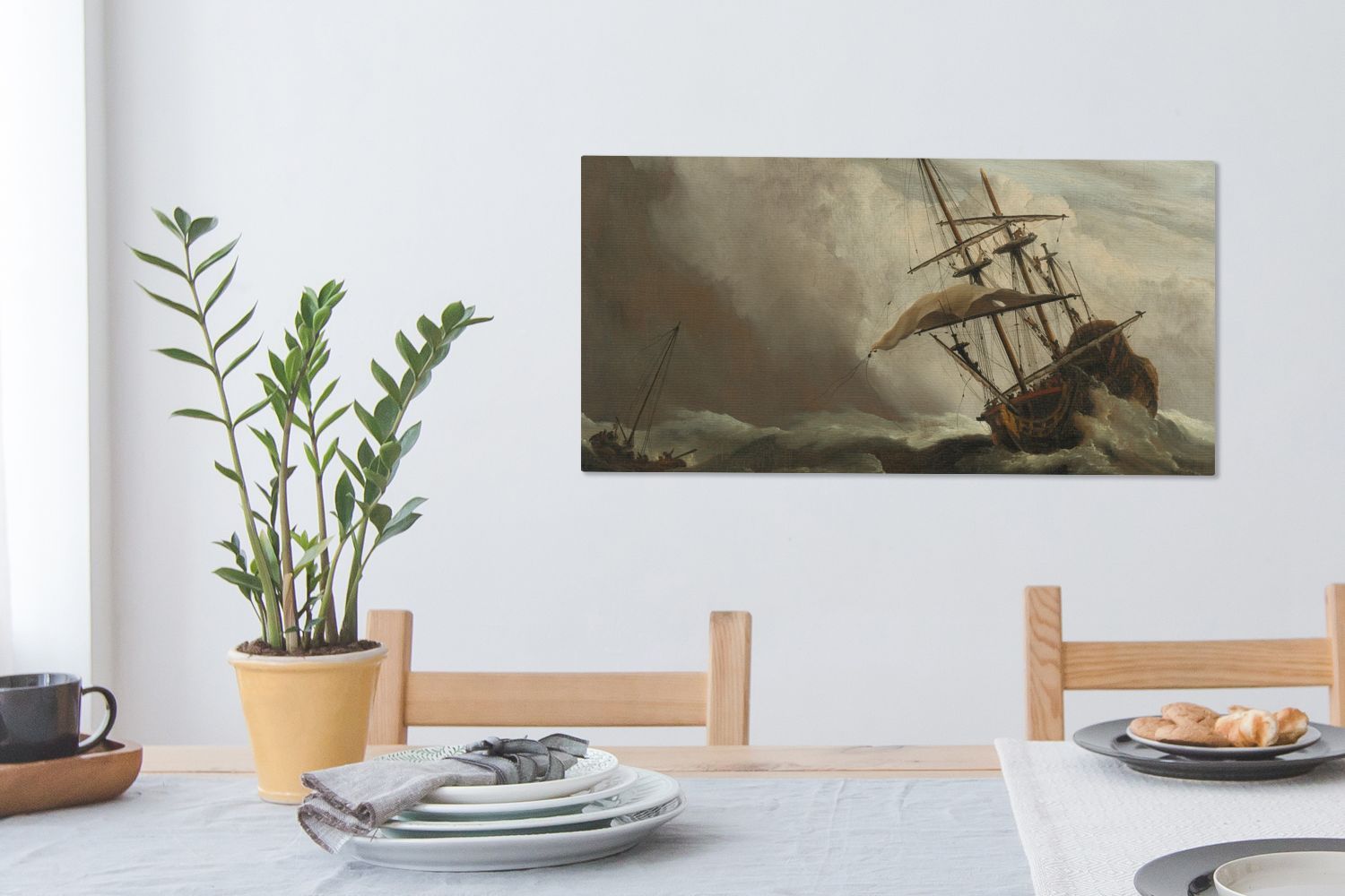 Leinwandbilder - 80x40 cm - Ein Schiff auf offener See während eines Sturms - Gemälde