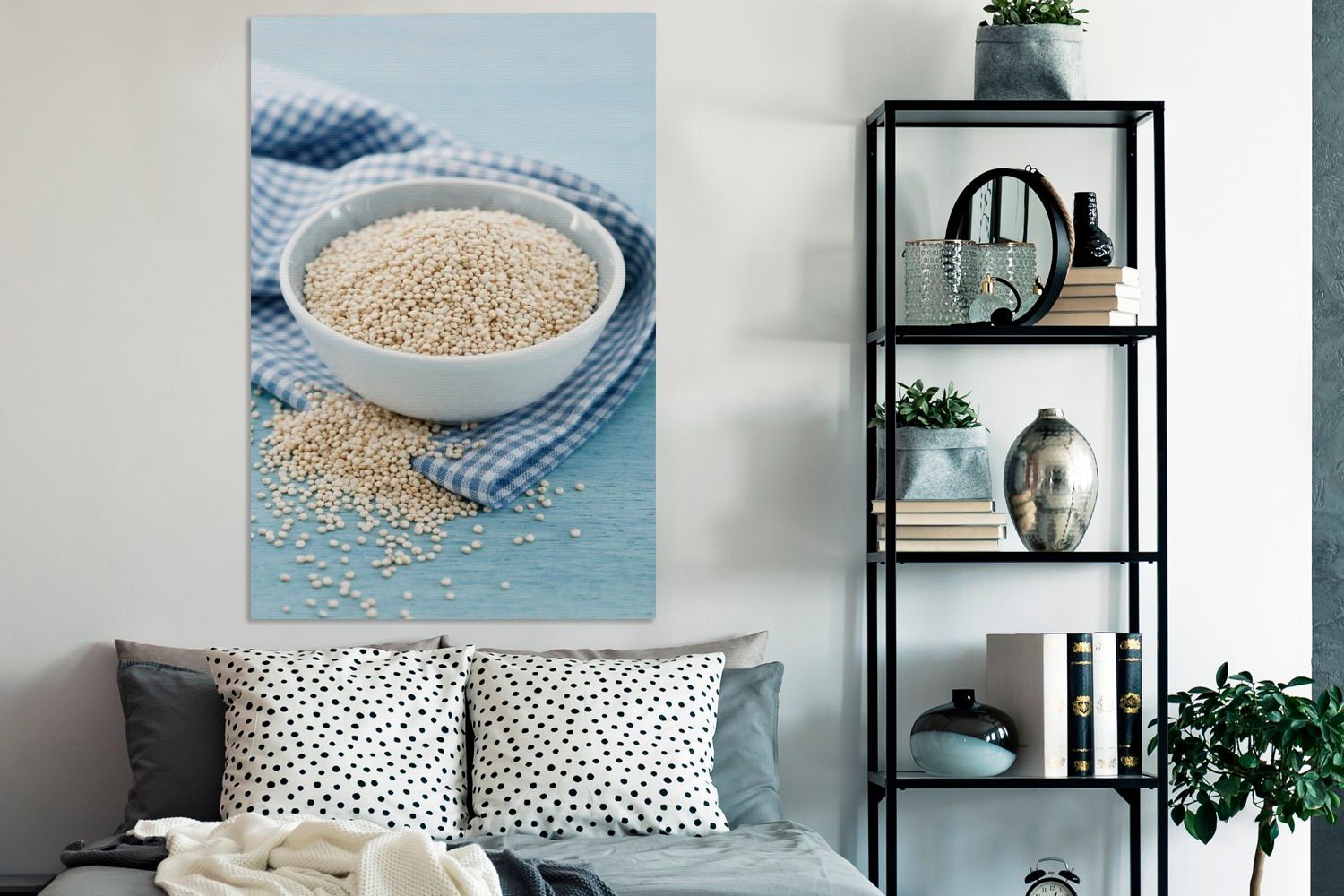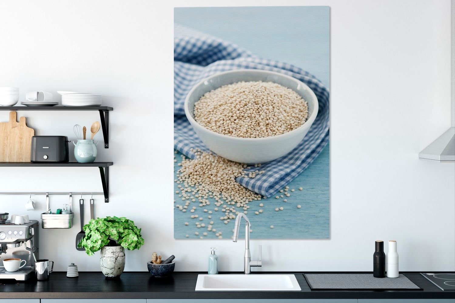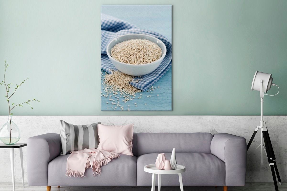 Leinwandbilder - 90x140 cm - Die gesunde Quinoa in der Porzellanschale
