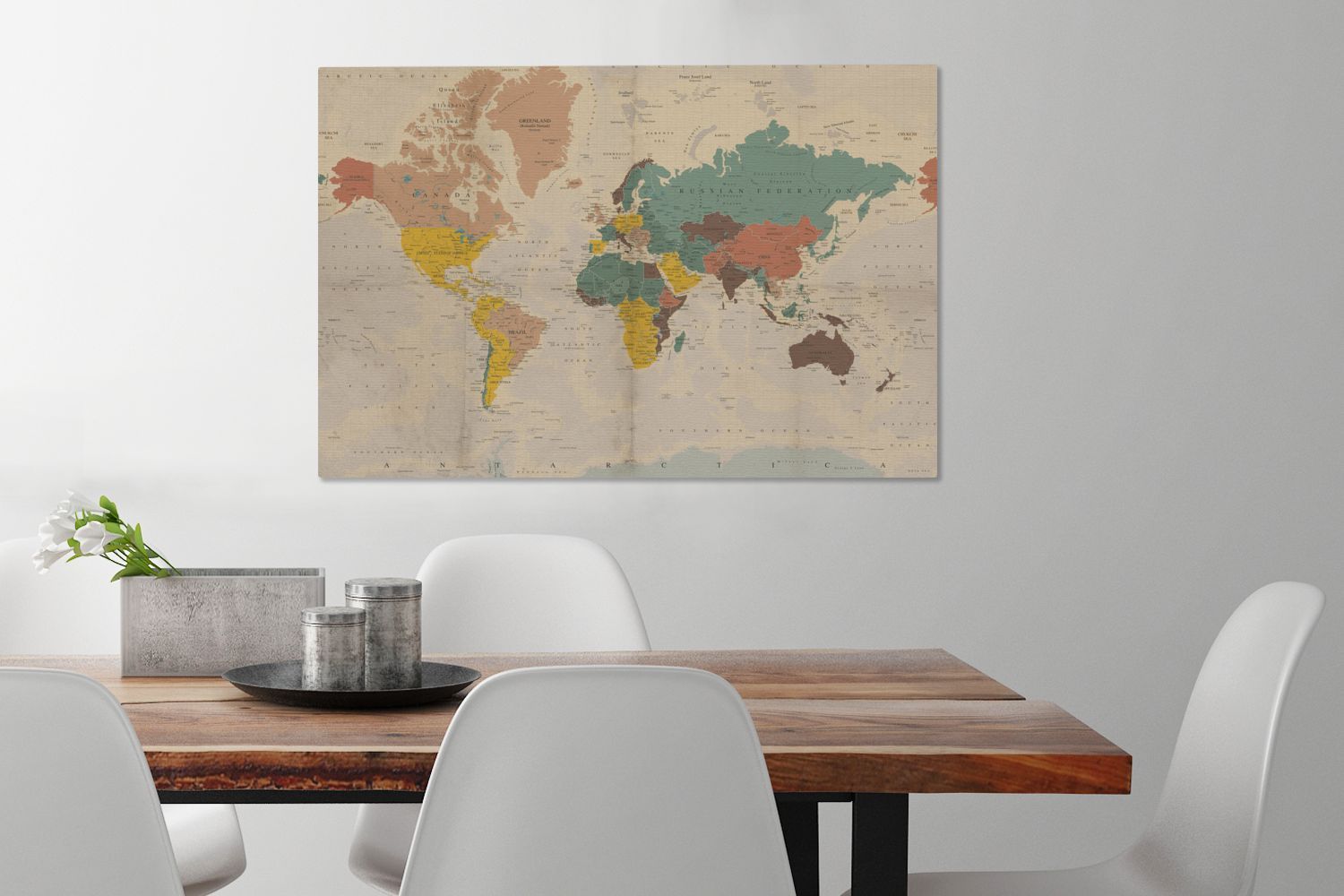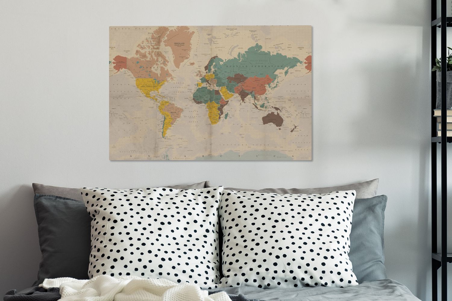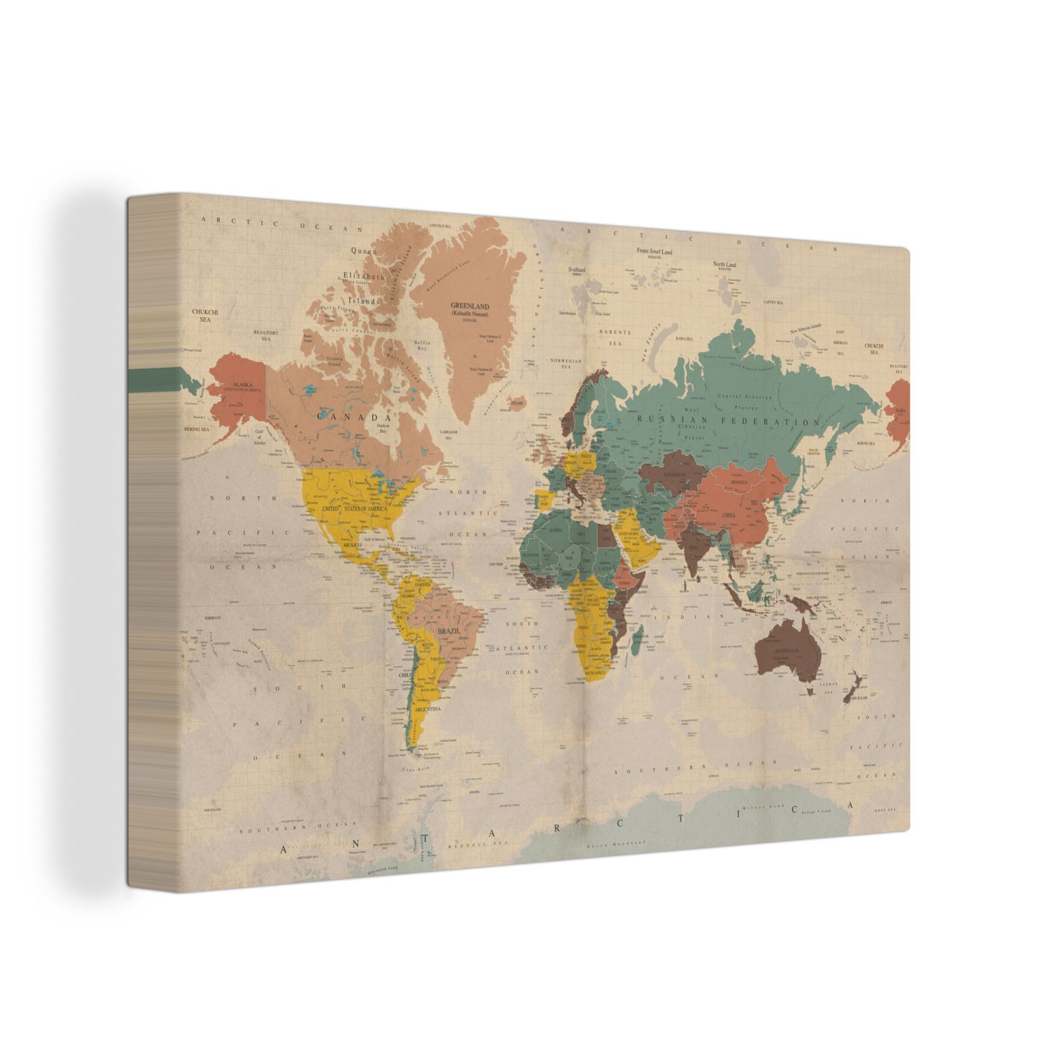 Leinwandbilder - 90x60 cm - Weltkarte - Vintage - Atlas