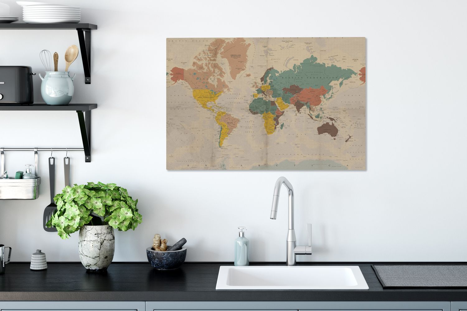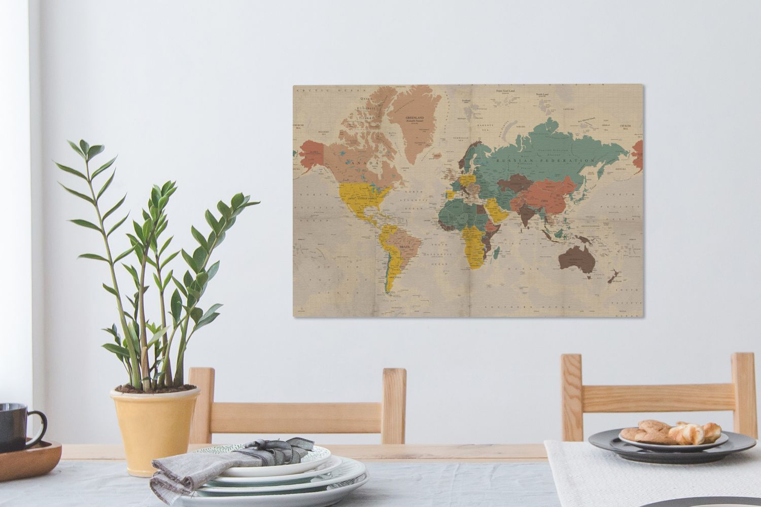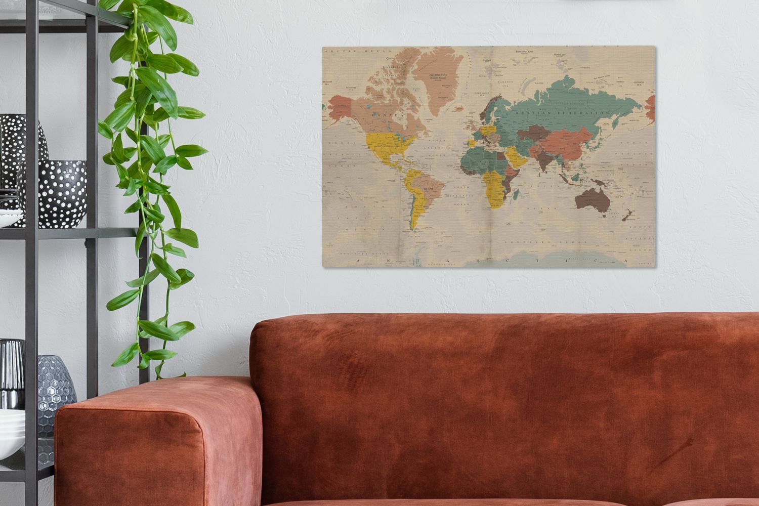 Leinwandbilder - 90x60 cm - Weltkarte - Vintage - Atlas
