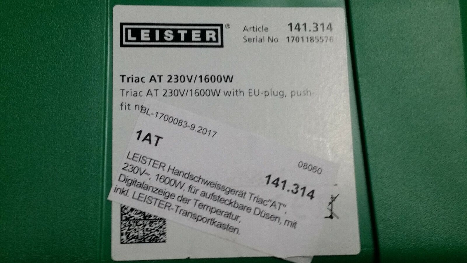 LEISTER TRIAC AT Art.Nr.141.314 Heißluft-Handschweißgerät – Werkzeug der neusten Generation Das TRIAC AT ist ein zuverlässiges, robustes, intelligentes Heißluft-Handgerät zum Schweißen und Schrumpfen von Kunststoff,Folien usw. Seine universellen Einsatzbereiche sind vielfältig, sowohl innen als auch