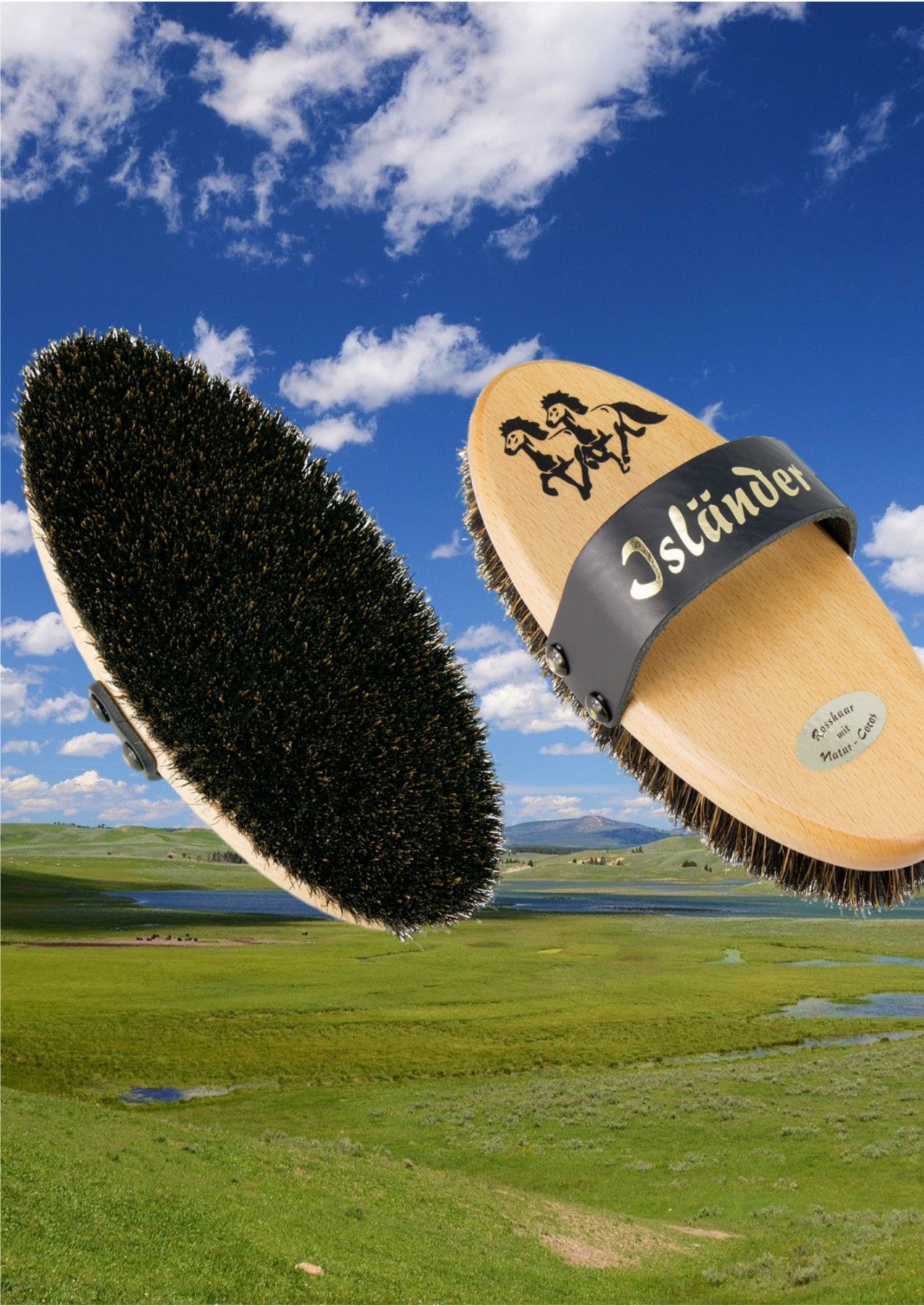 Kardätsche » Isländer « 100 % Rosshaar mit 100 % Cocosfasern (Kokosfasern) gemischt Borstenhärte: medium-straff Größe c: 190 x 85 mm Die Kardätsche » Isländer « vereint ein hervorragendes Putzergebnis mit einem wohltuenden Massageerlebnis für das Pferd. Selbst stärkere Versch