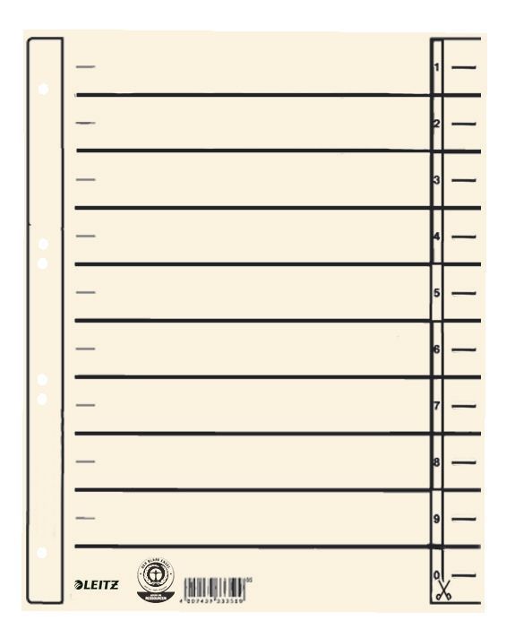 Leitz Leitz 1657-00-11 1657 Trennblätter - Lochung hinterklebt, Überbreite, A4, chamois,
