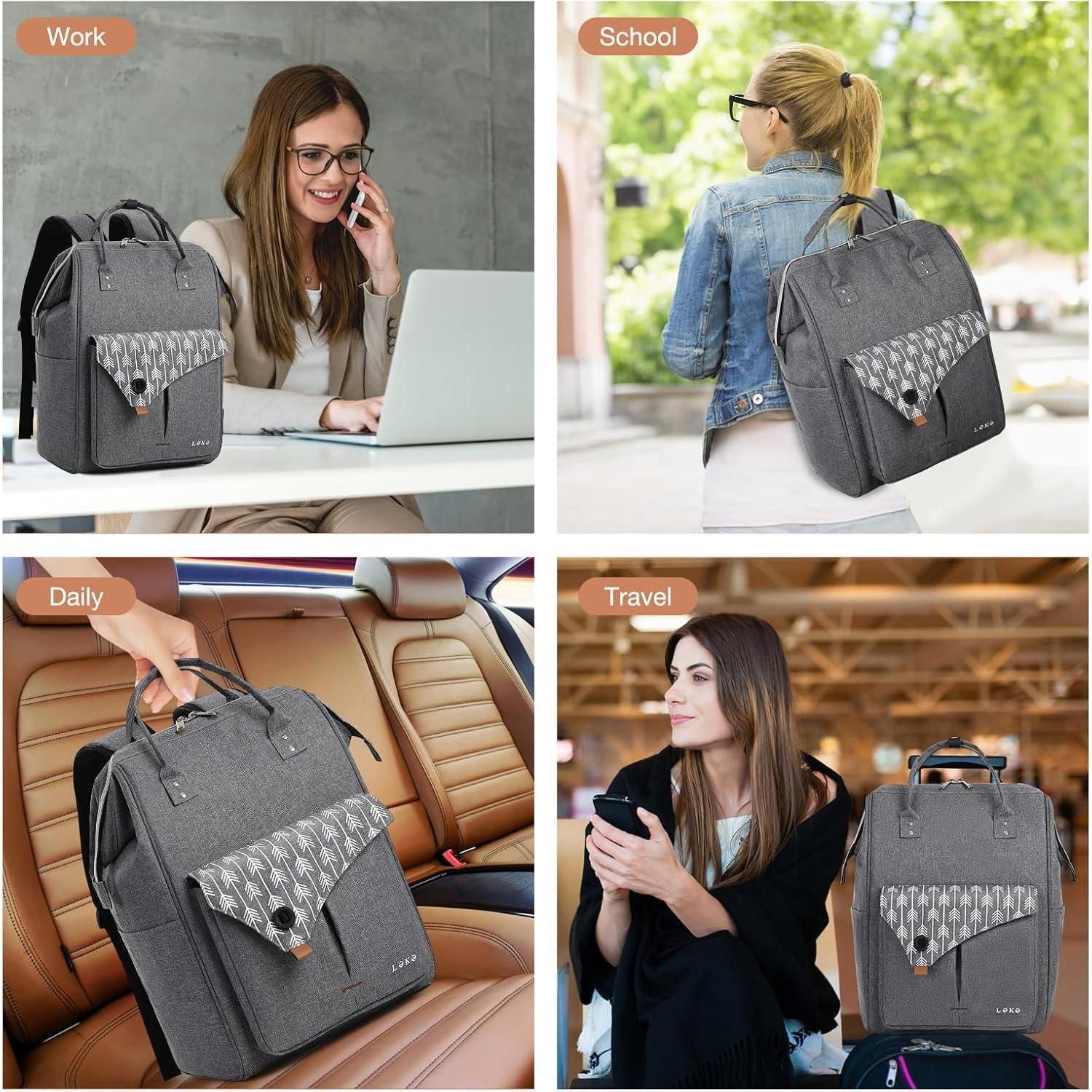 Lekesky Damen Rucksack mit Laptopfach und Diebstahlschutz Grau 15.6 Zoll