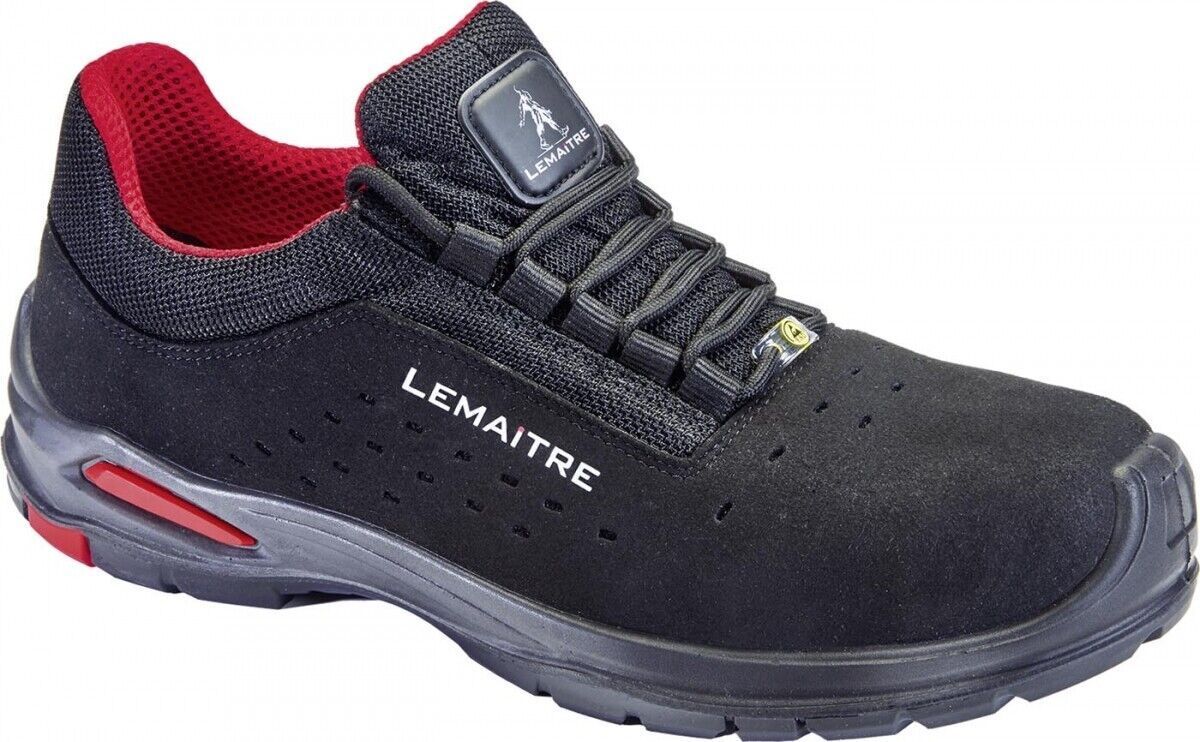 Lemaitre Riley light, 8058, leichte Sicherheitsschuhe, Arbeitsschuhe S1P ESD LEMAITRE Sicherheitsschuhe RILEY light 8058, Schutzklasse S1P Dieser Sicherheitsschuhe bietet außen feinste, schwarze Mikrofaser - innen atmungsaktives, rotes Mesh. Durch die Mikrofaser als Schaftmaterial sind die Arbeitssc