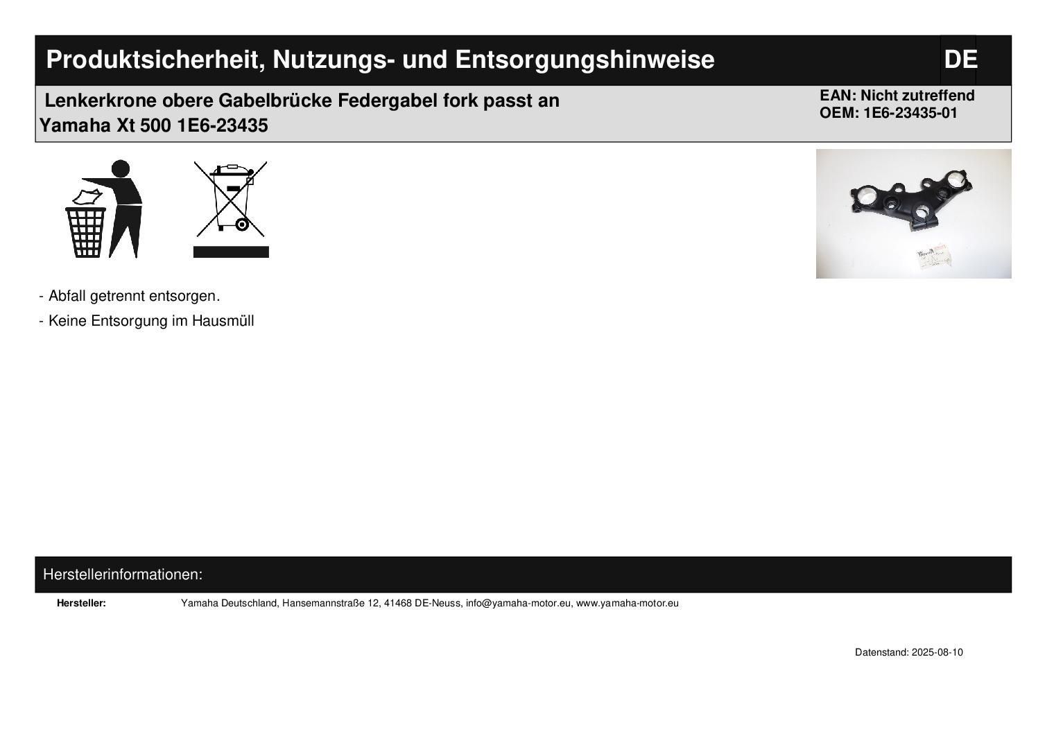 Lenkerkrone obere Gabelbrücke Federgabel fork passt an Yamaha Xt 500 1E6-23435