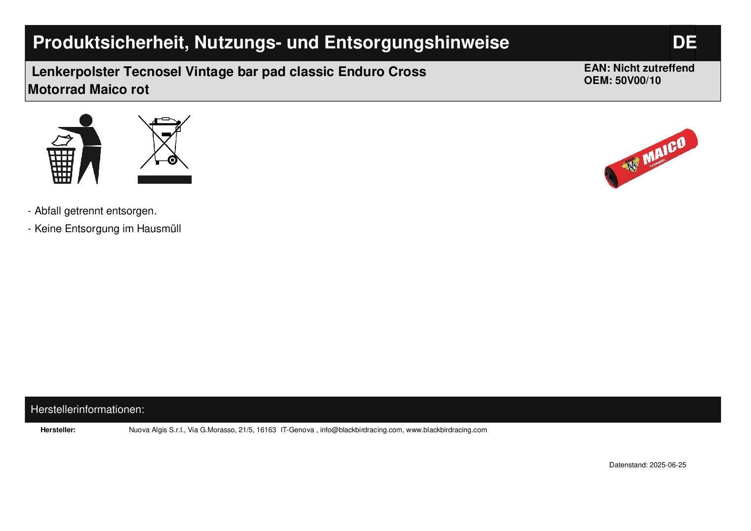 Lenkerpolster Tecnosel Vintage bar pad classic Enduro Cross Motorrad Maico rot