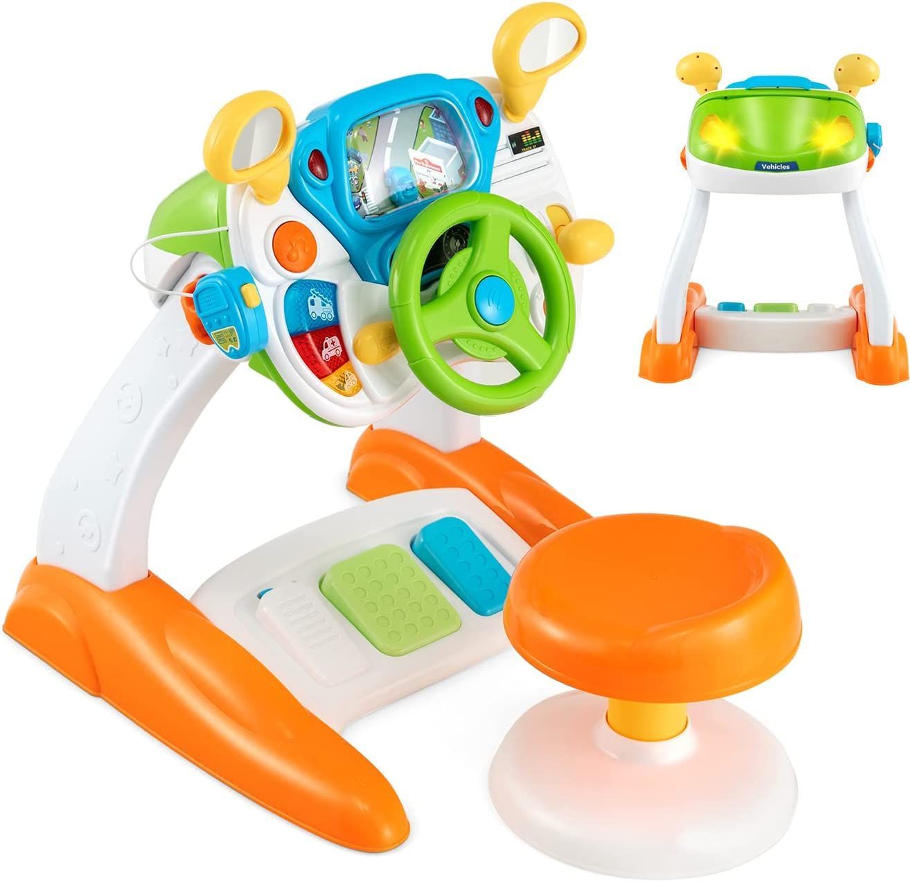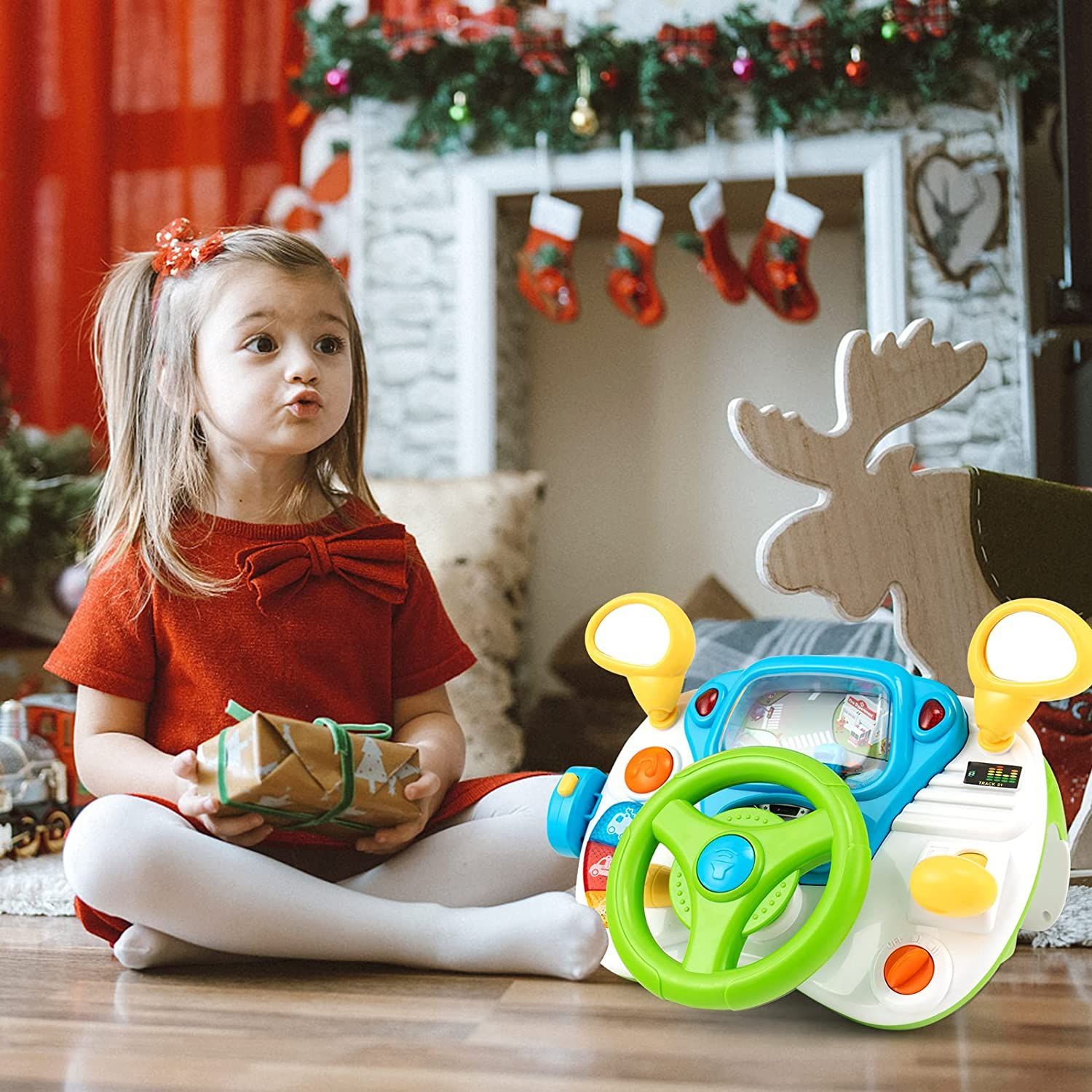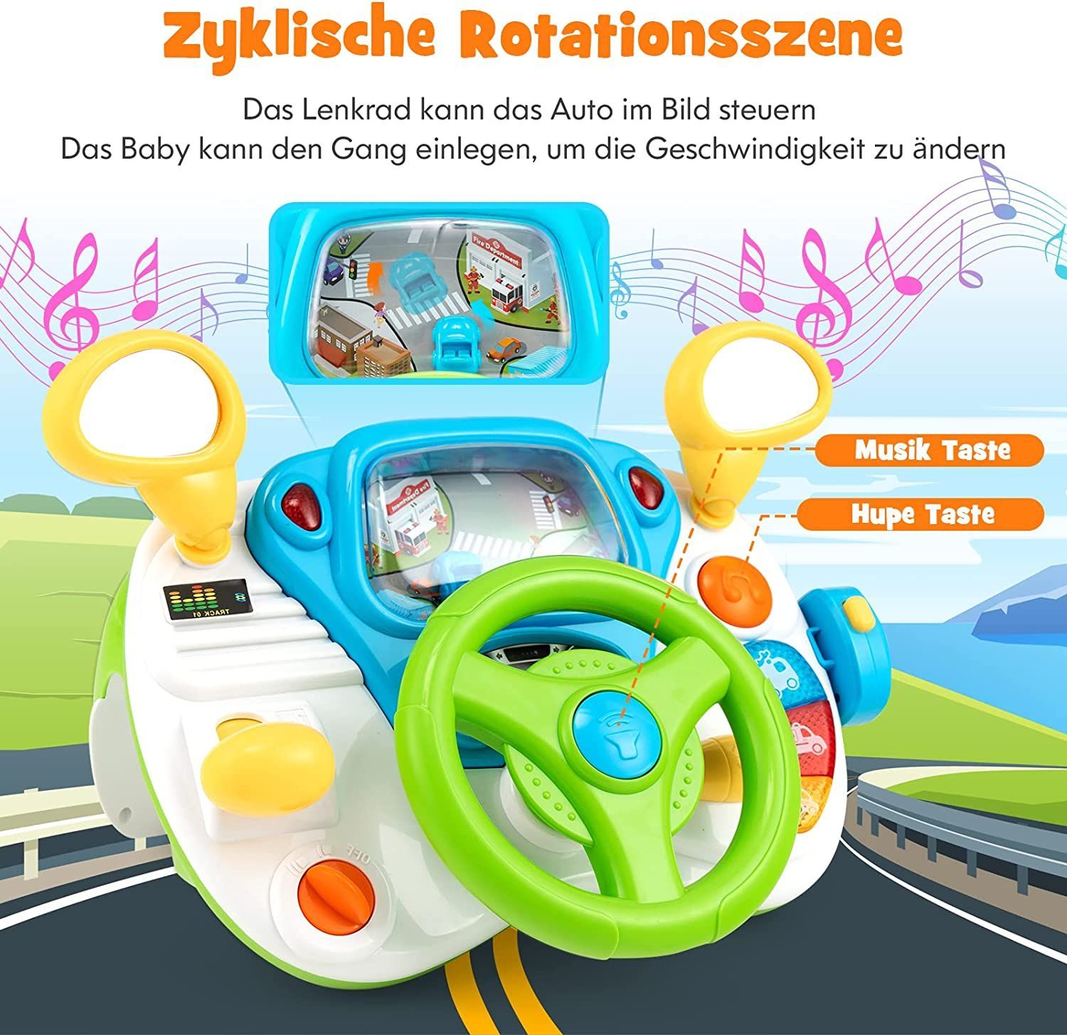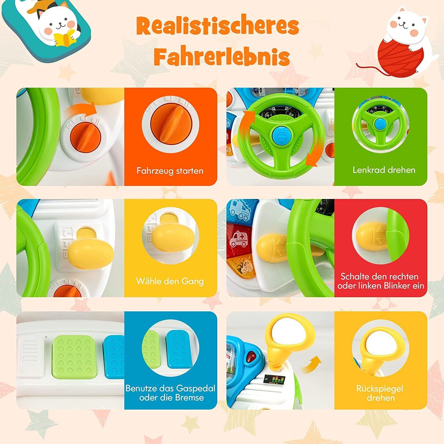 Lenkrad-Spielzeug, Interaktives Fahrspielzeug mit Hocker, Licht, Musik, Megaphon