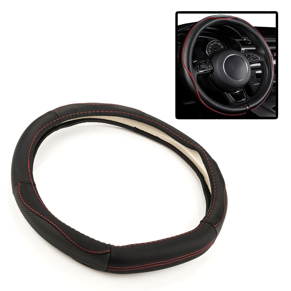 Lenkradbezug Lenkrad Ø 38x9 cm anthrazit rot perforiert für AUDI für Porsche