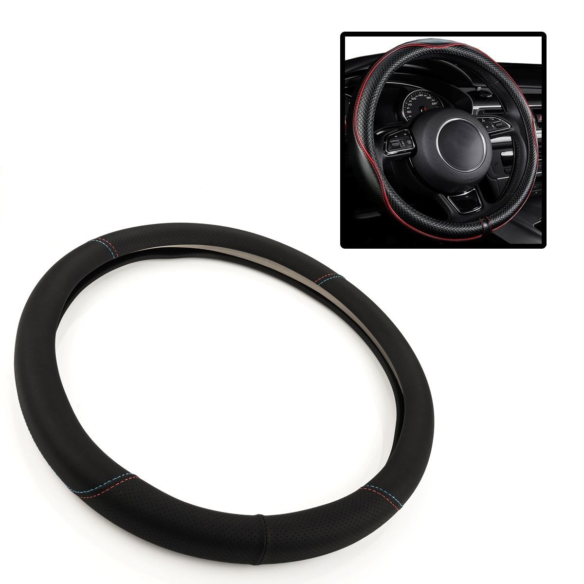 Lenkradschoner Lenkrad Schoner Bezug Lenkradbezug Hülle Abdeckung Schwarz rote blaue Naht Autoteile-Okzam, RST-AG, Alot-Performance, Baseparts, Autoteile, Auto, Ersatzteile, LST, OKZAM, Reparatur, Rep., Set, Satz, Teil, Ersatz, Austausch, Auto, Automobil, KFZ, Fahrzeug, Teile, steering, steuerung, lenkung, Repsatz, Repkit