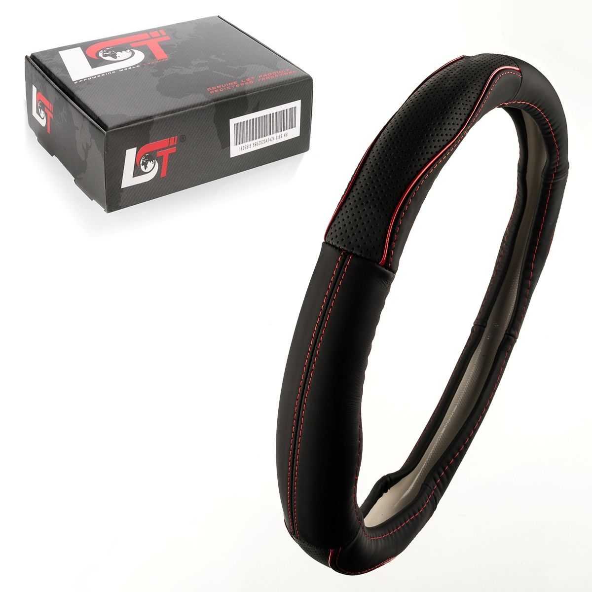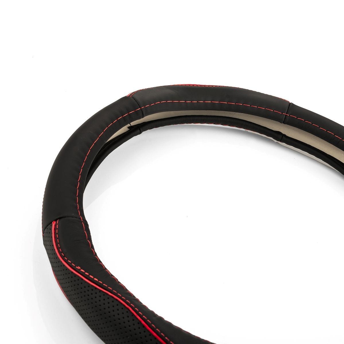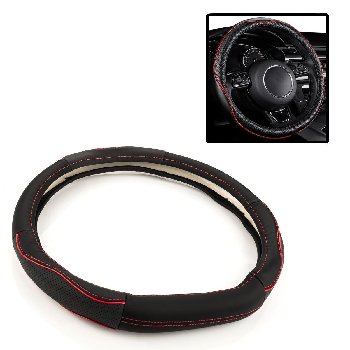 Lenkradbezug Lenkrad Ø 38x9cm 15x3,5 Zoll schwarz rote Naht für AUDI für Porsche