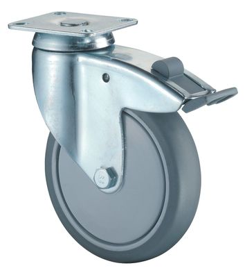Lenkrolle m. Festst.D.100mm Trgf.80kg m. Platte Kugell. Gum. grau BS ROLLEN