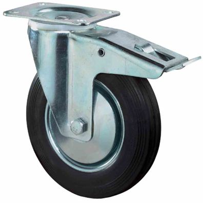 • Wiltec Lenkrolle o. Bremse 125mm 100kg Vollgummirad Feststellbremse Transport