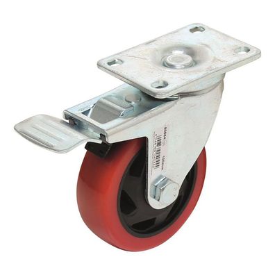 BGS-80664 Lenkrolle mit Bremse rot/schwarz 100 mm