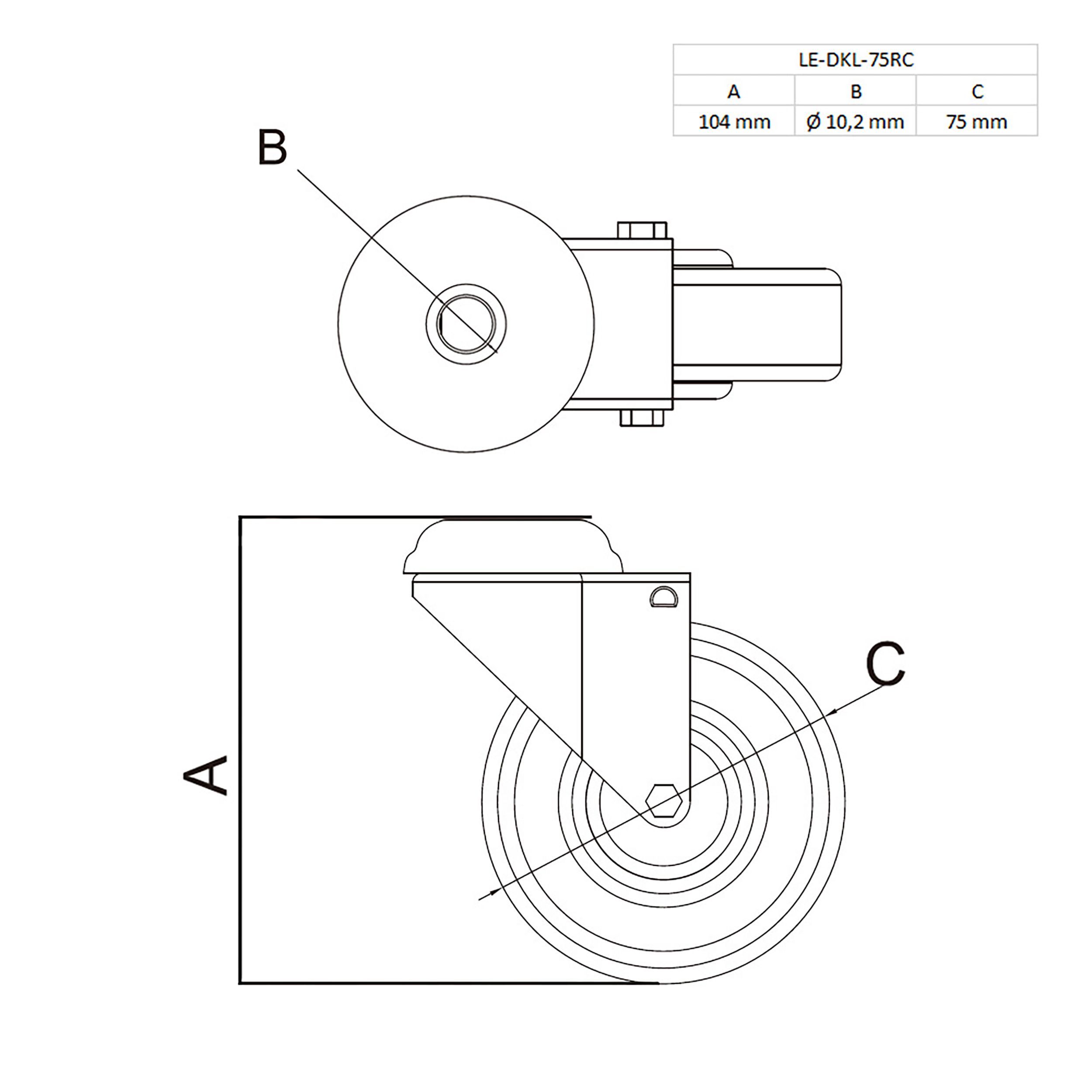 Lenkrolle Gummirolle mit Bremse Ø75mm Rückenloch Ø10,2mm für Aluprofil