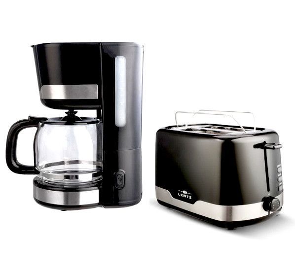 Lentz LENTZ Frühstücksset Kaffeemaschine Toaster schwarz-silber