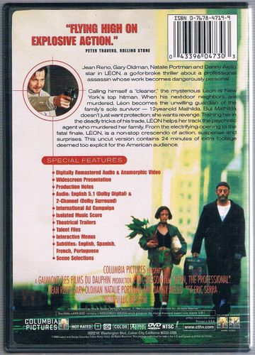 Leon The Professional - DVD - RC1 Mit Jean Reno, Natalie Portman, Gary Oldman u.a. Sprachen: Englisch Untertitel: Englisch, Spanisch, Französisch, Portugiesisch Laufzeit: 133 Minuten Freigegeben ab 16 Jahren Die DVD befindet sich in gutem Zustand (leichte Gebrauchsspuren)! Achtung: Diese DVD hat den