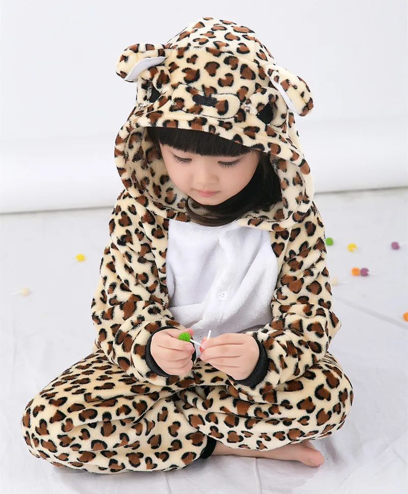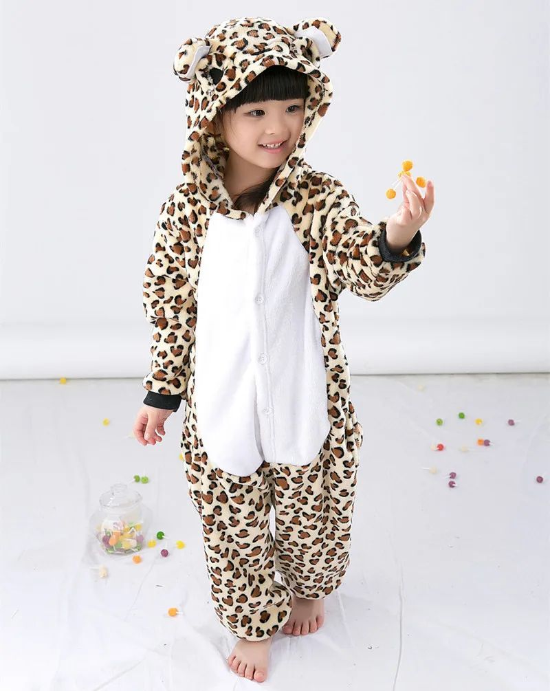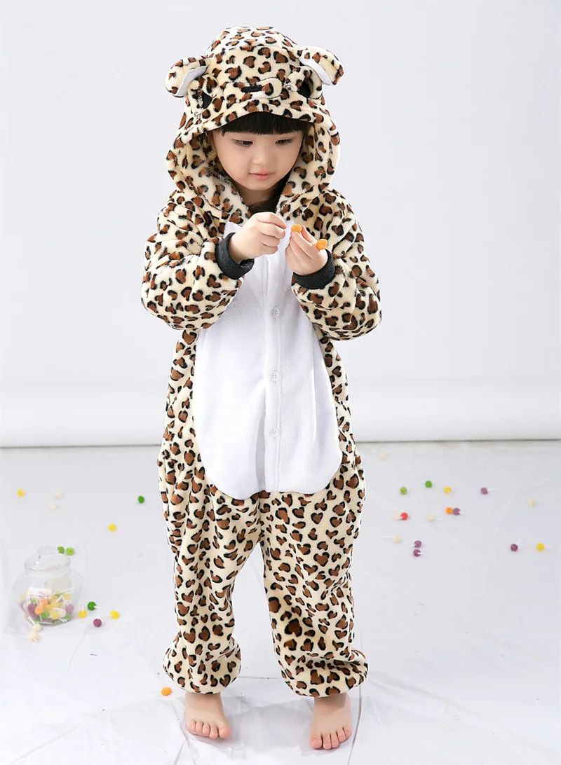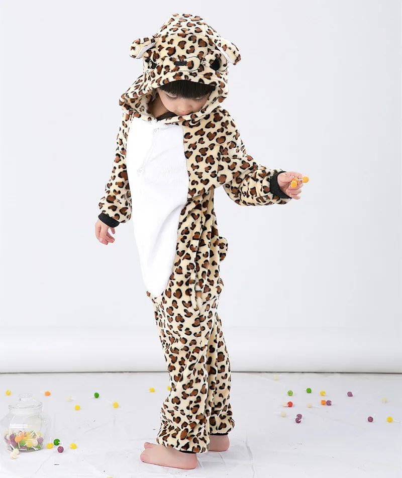 Leopard Bar Onesie Kinder Tier Kigurumi Cosplay Pyjamas Halloween Karneval Plusch