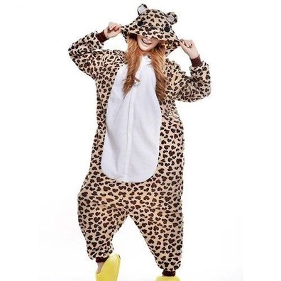 Leopard Onesie Damen Tier Cosplay Pyjamas Plusch Winter Kapuze Schlafanzug