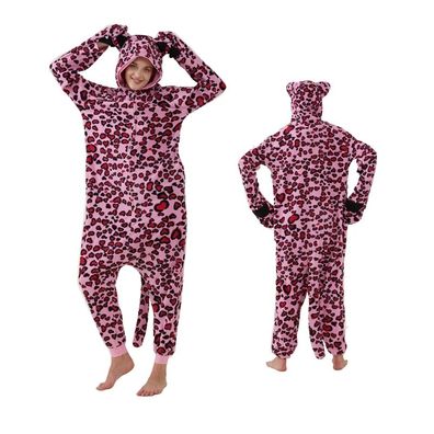 Rosa Leopard Kigurumi Onesie Damen Tier Cosplay Pyjamas Plusch Fleece Halloween