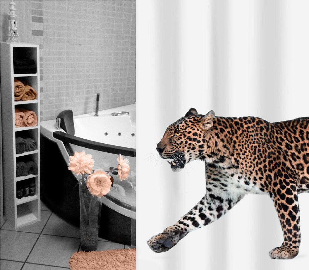Leopard Beige Schwarz Textil Duschvorhang 180 x 200 cm. Tiermotiv