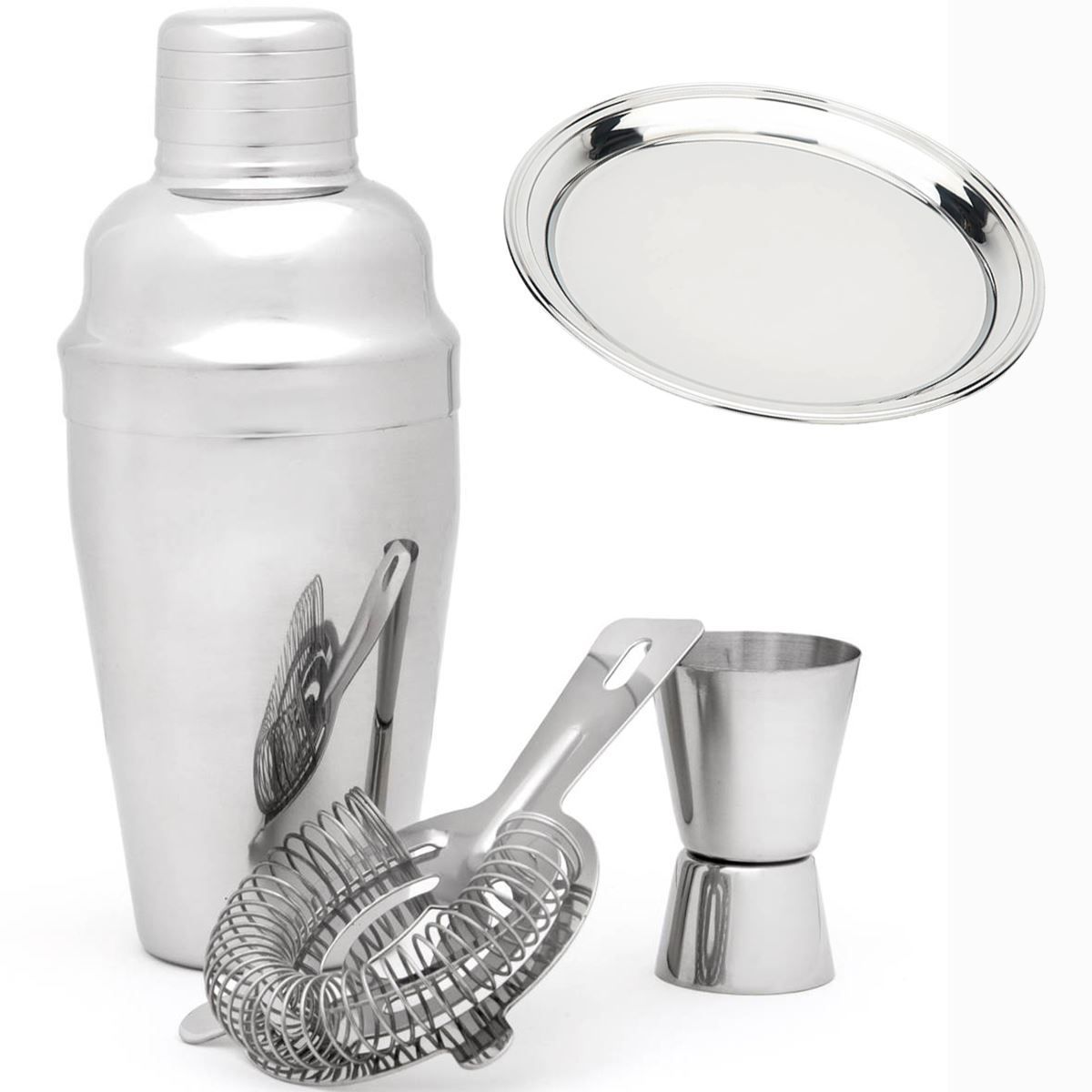 Leopold Vienna Leopold Vienna Cocktail Shaker Set & Mixer & Serviertablett Edelstahl rund