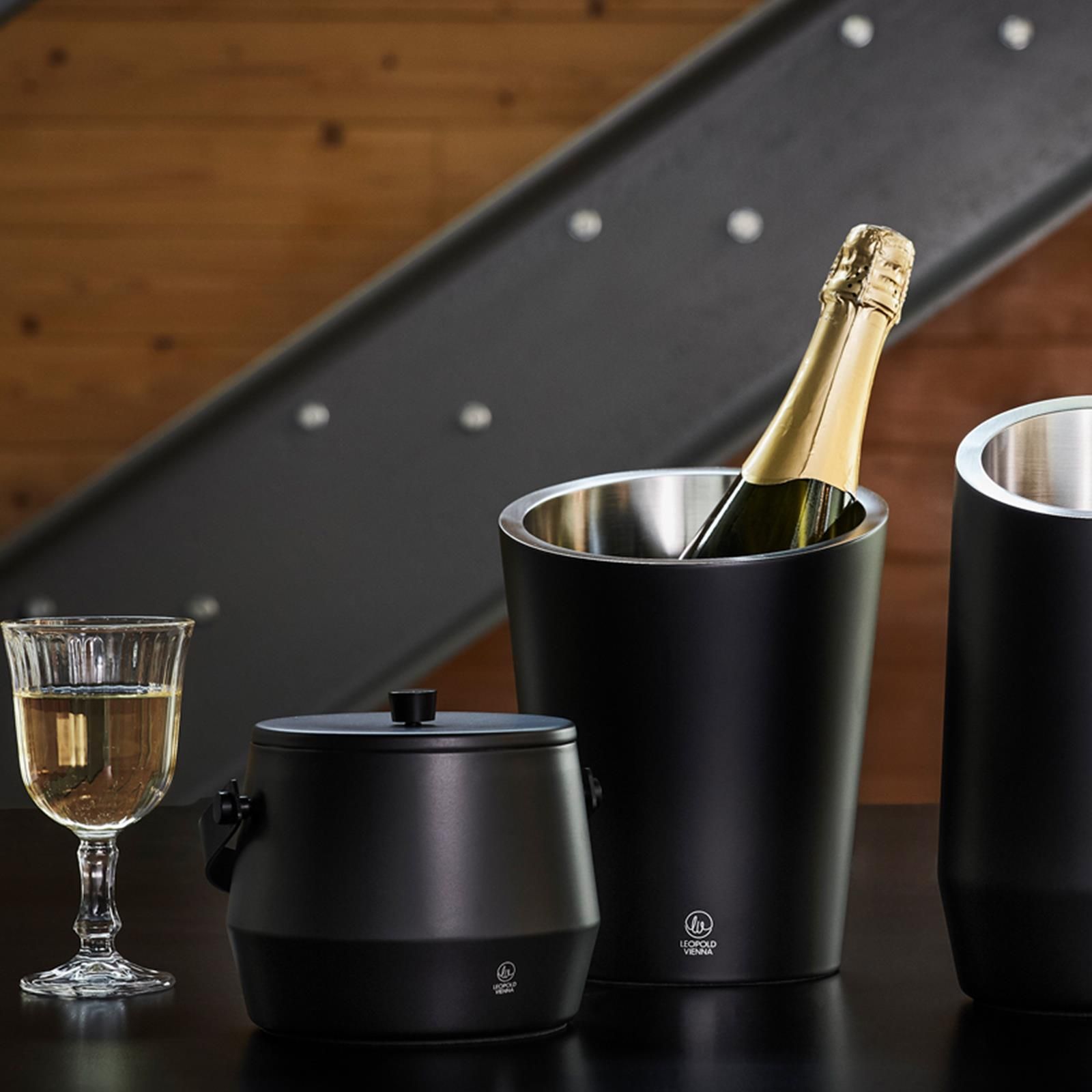 Leopold Vienna Leopold Vienna Flaschenkühler doppelwandig Edelstahl schwarz Sektkühler Tischkühler 1