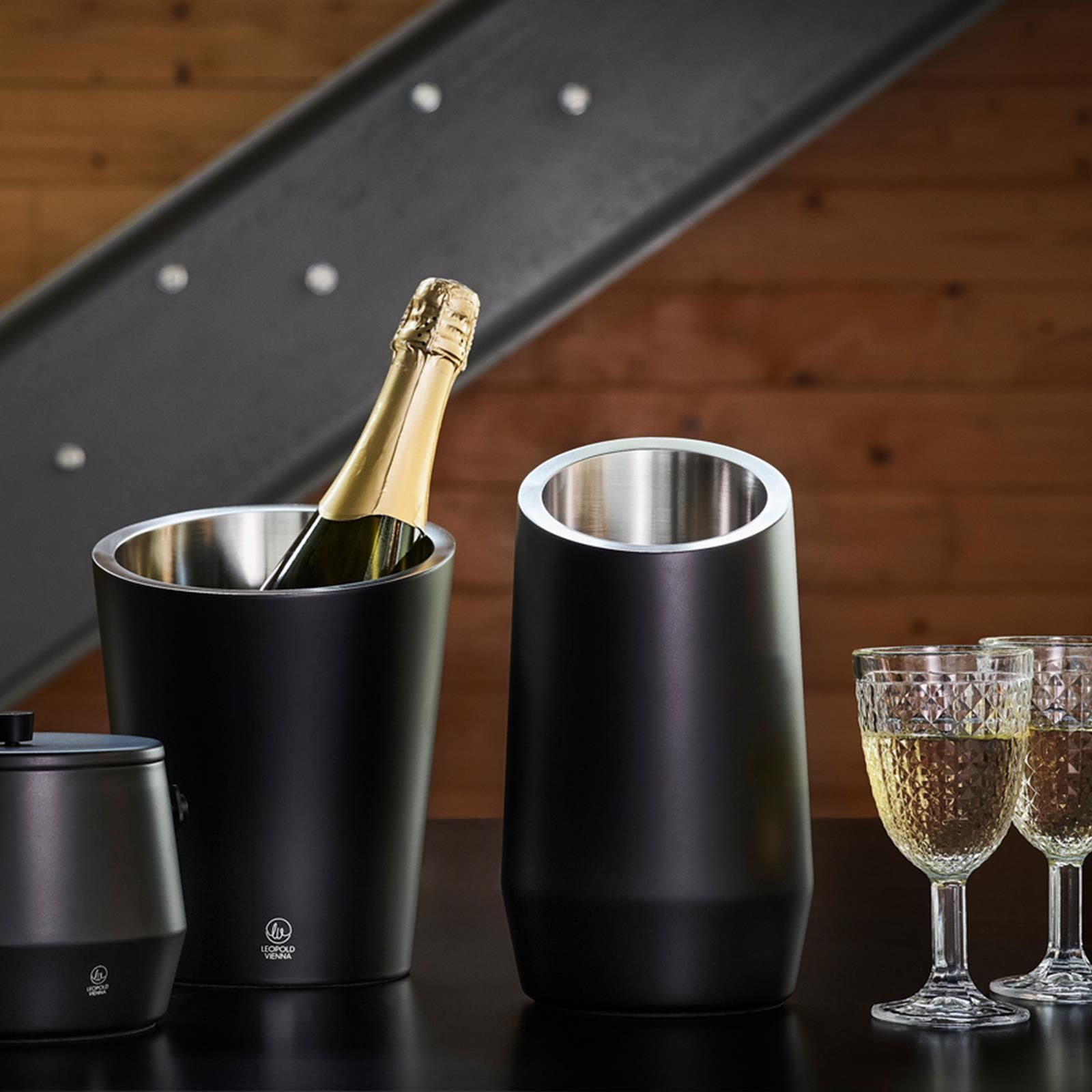 Leopold Vienna Leopold Vienna Flaschenkühler Edelstahl doppelwandig schwarz Sektkühler Tischkühler 1