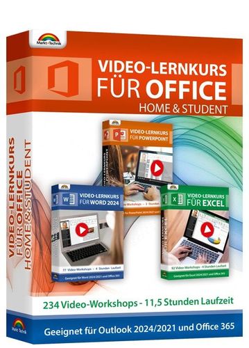 Lernkurs Office 2024-2021 Home and Student - 11,5 Stunden - PC Download Version