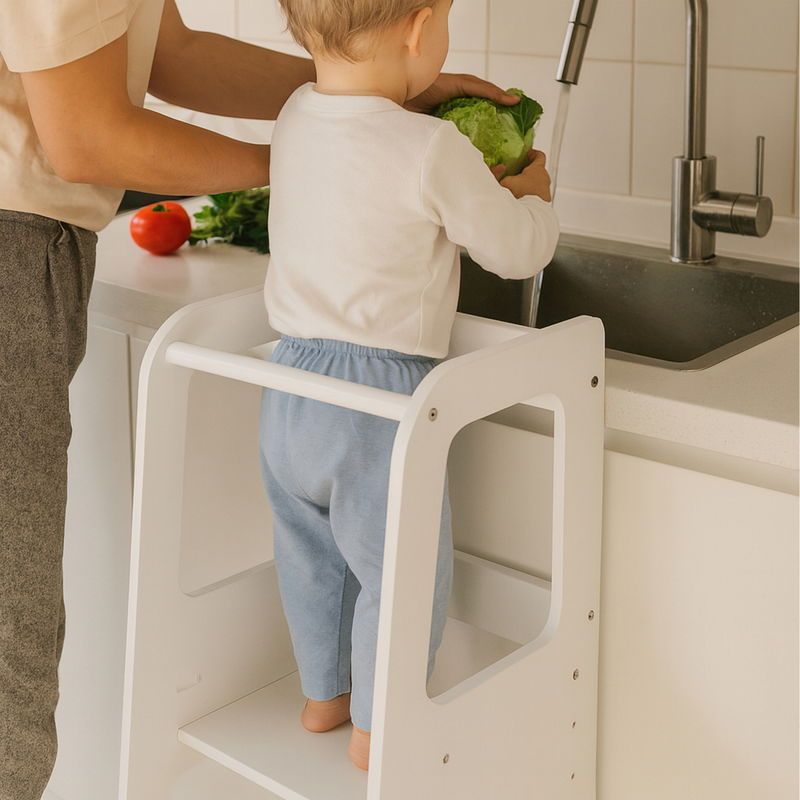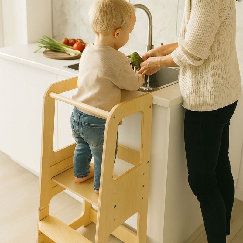 Lernturm für Kinder ab 1 Jahr aus Birkenholz, höhenverstellbar, natur : natur