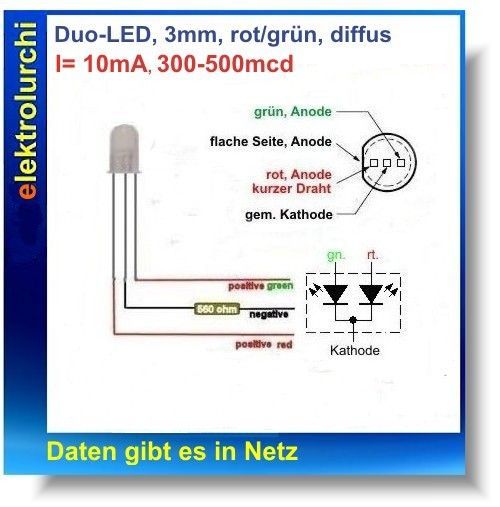 Leuchtdiode / Duo-LED, 5mm, zweifarbig, rot/ grün Tpy : HLMP4000 von HP 10St.