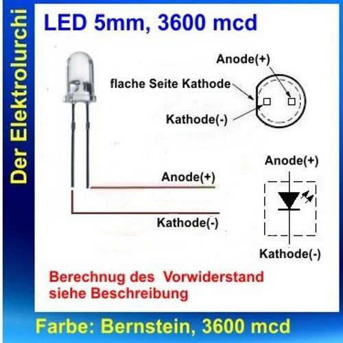 Leuchtdiode / LED, bedrahtet, bernstein, amber , Ø 5mm, glasklar, 3600mcd, 20St.