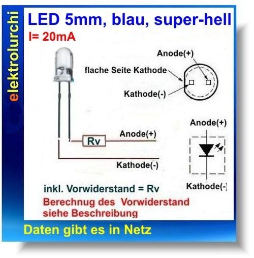 Leuchtdiode / LED, bedrahtet, blau, Ø 5mm, klar, 3600mcd, 20St.