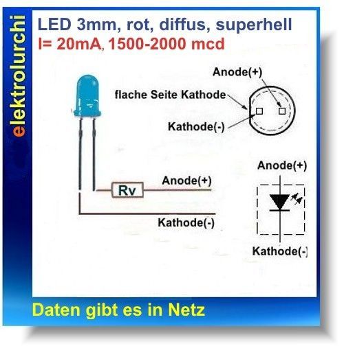 Leuchtdiode / LED, bedrahtet, blau superhell, Ø 5mm, diffus, 1500-2000 mcd, 10St.