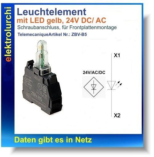 Sie bieten hier auf folgenden Artikel 1 Stück Leuchtelement 24V ac dc gelb Telemecanique Schneider Electric Frontbefest ZBV-B5 Spannung: 24V ac dc Strom: 18mA LED Farbe: gelb Außenmaße Körper: 27 x 10mm Montageart: Frontbefestigung Schutzart: IP65 Hersteller: Schneider Electric (früher Telemequanice