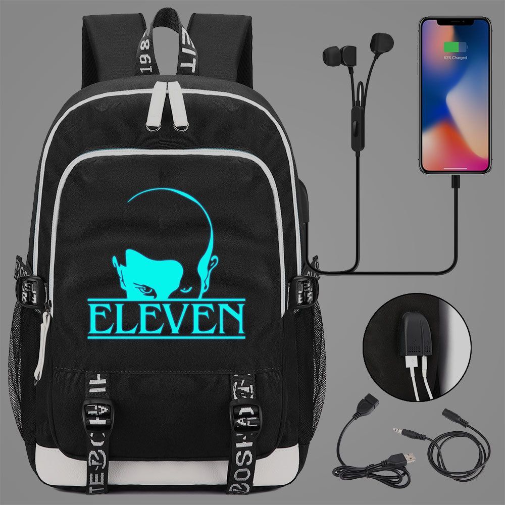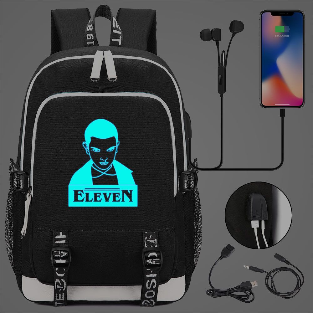 Leuchtend Stranger Things Eleven USB Rucksack Damen Reise Backpack 30x15x44cm