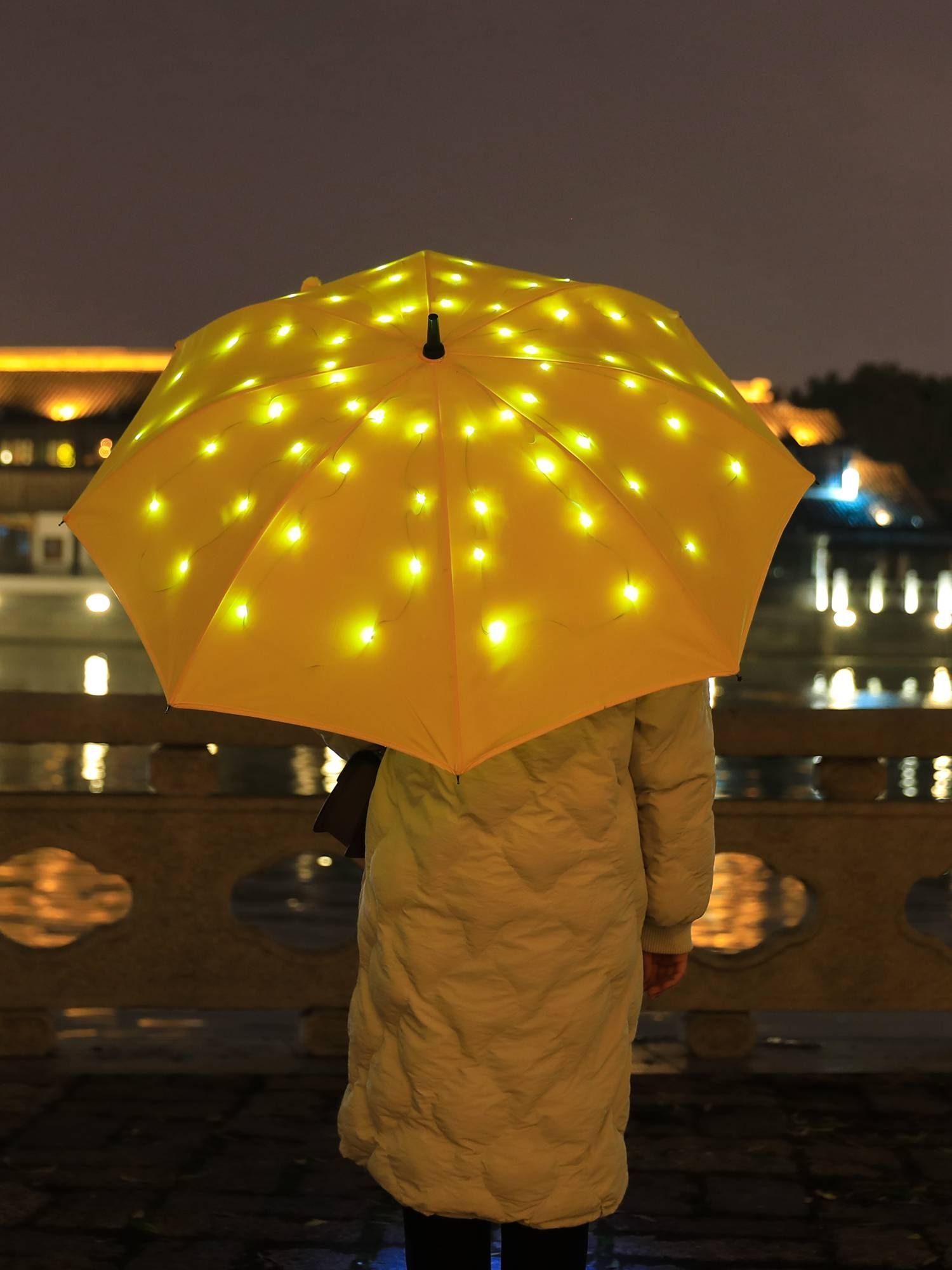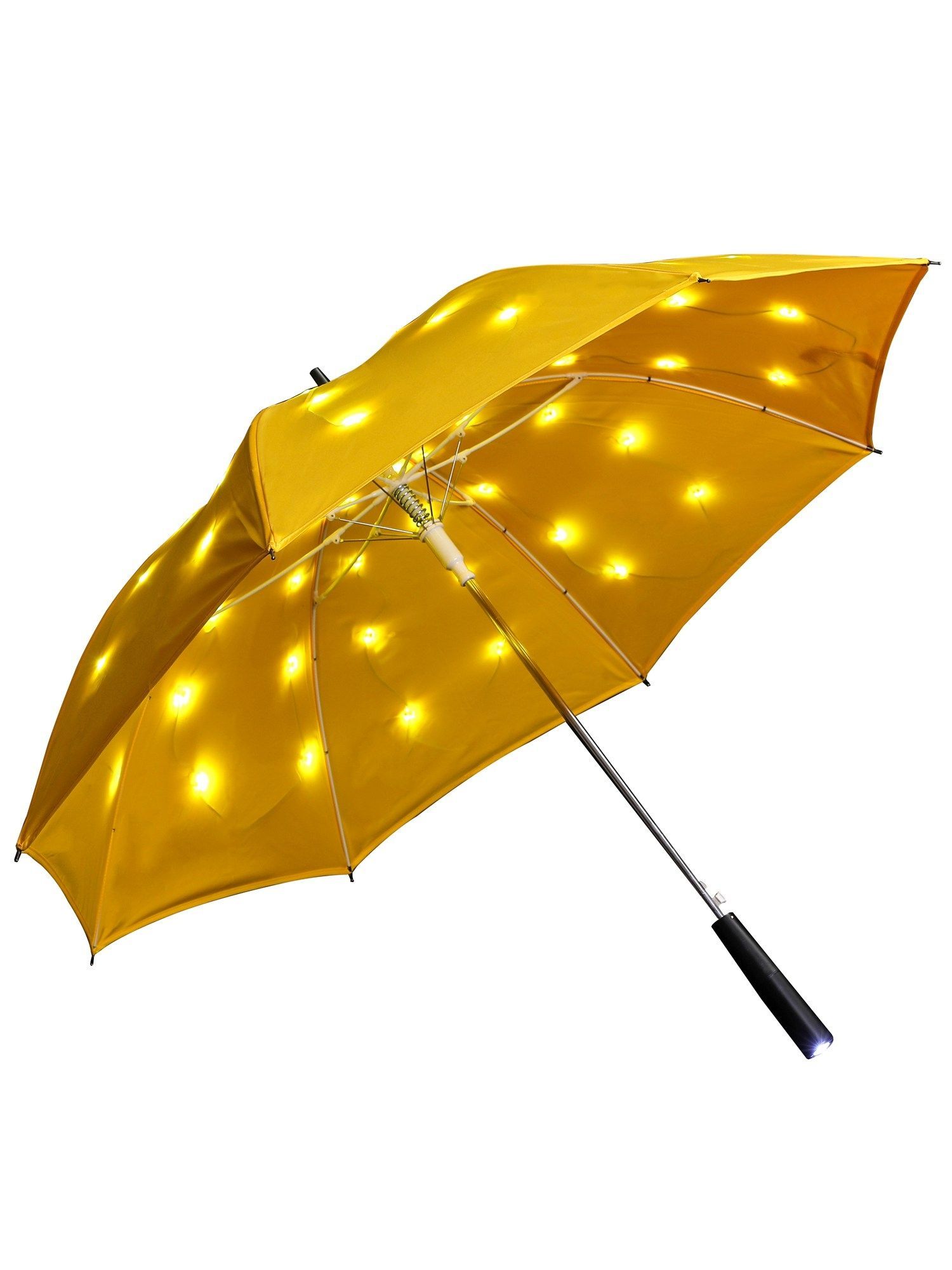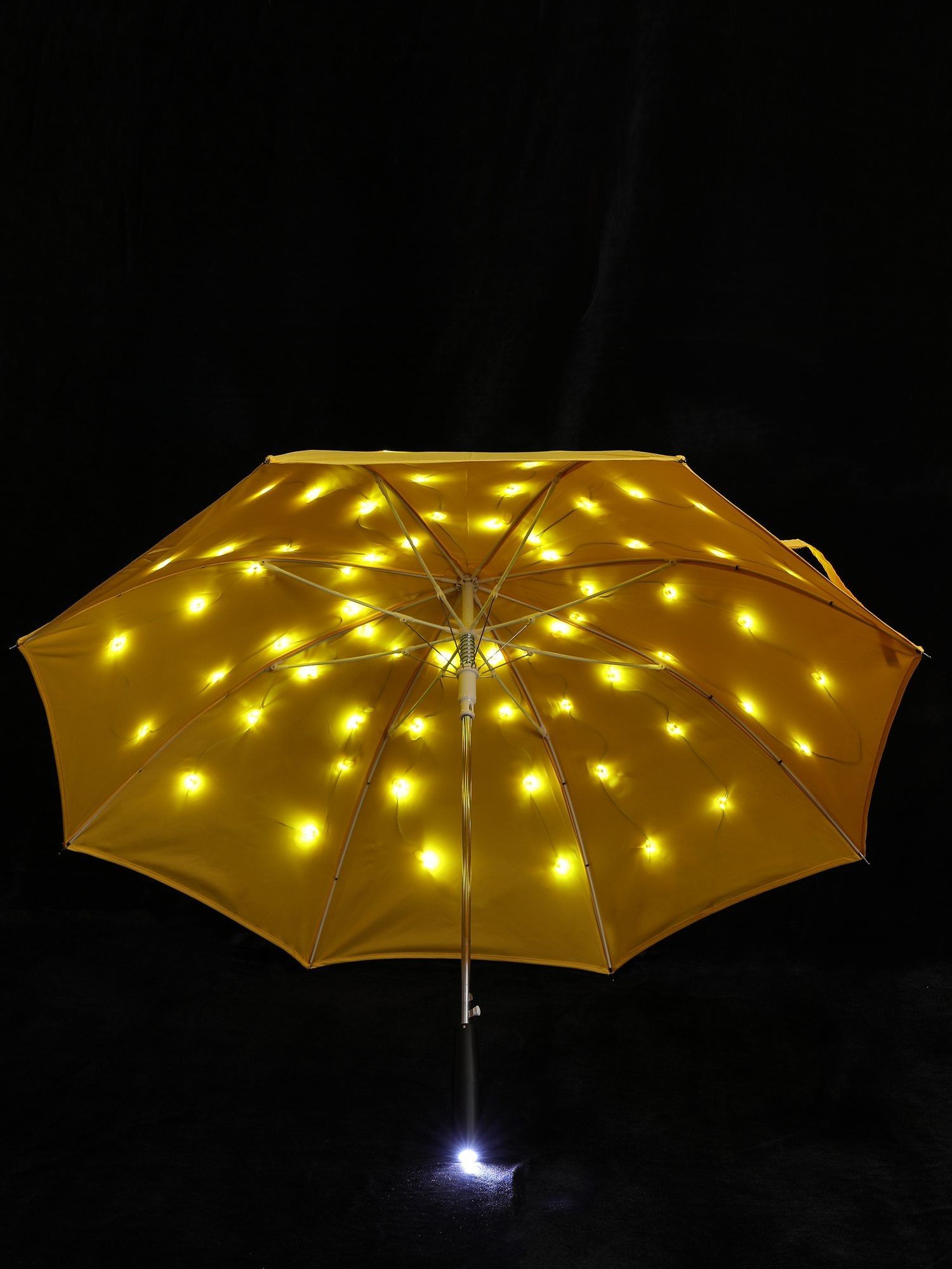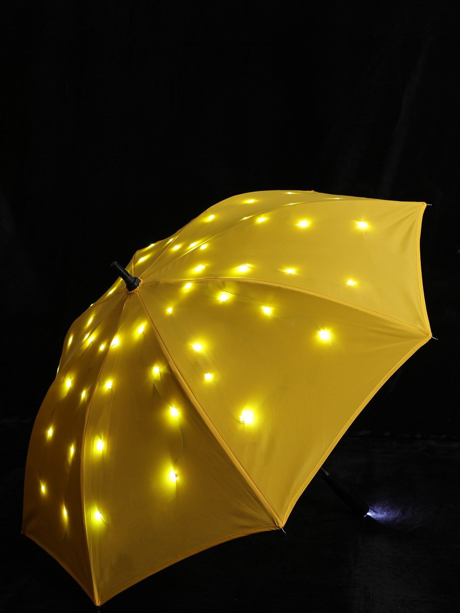 leuchtender LED Regenschirm Sternenhimmel Gelb mit eingearbeiteter Taschenlampe