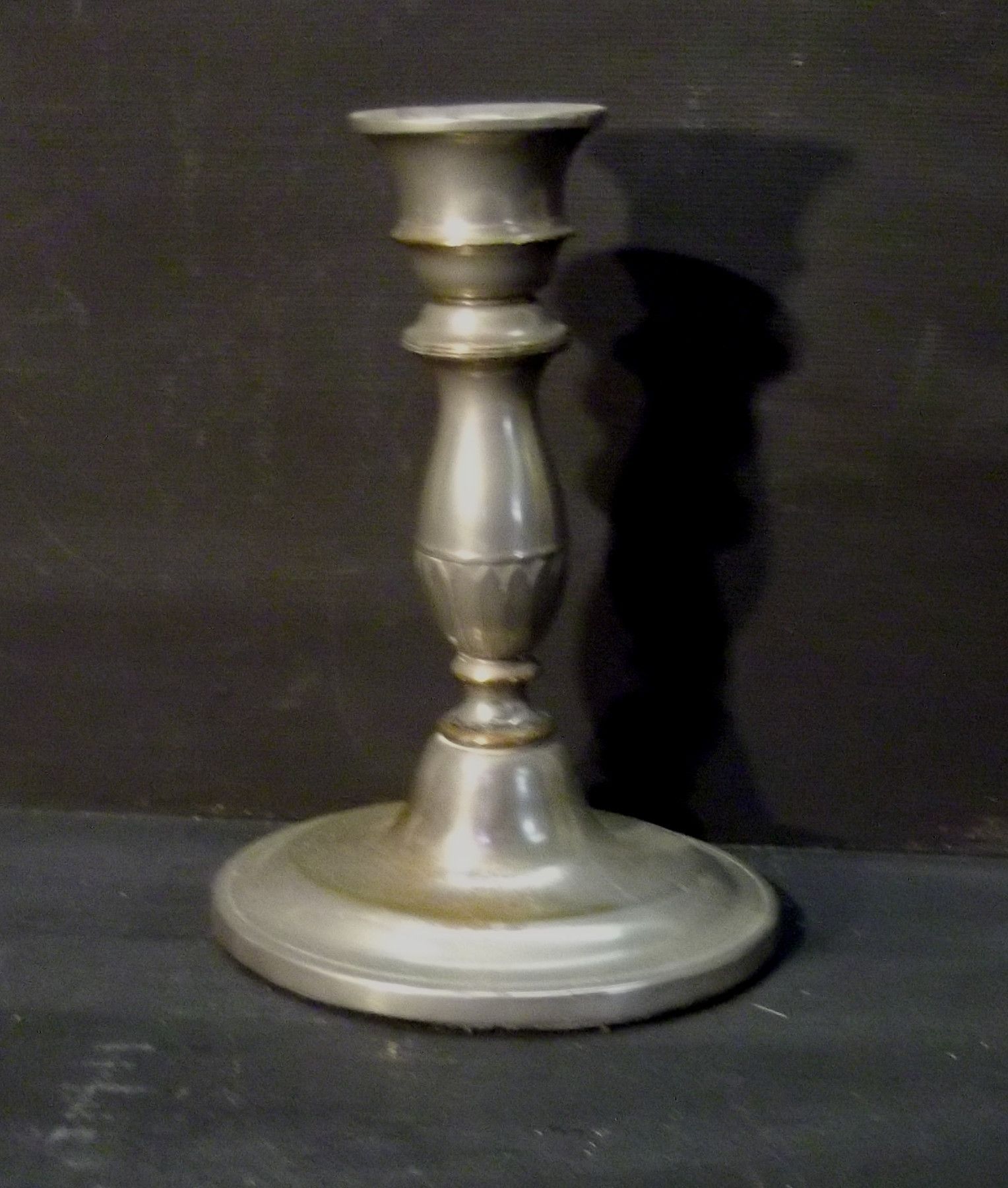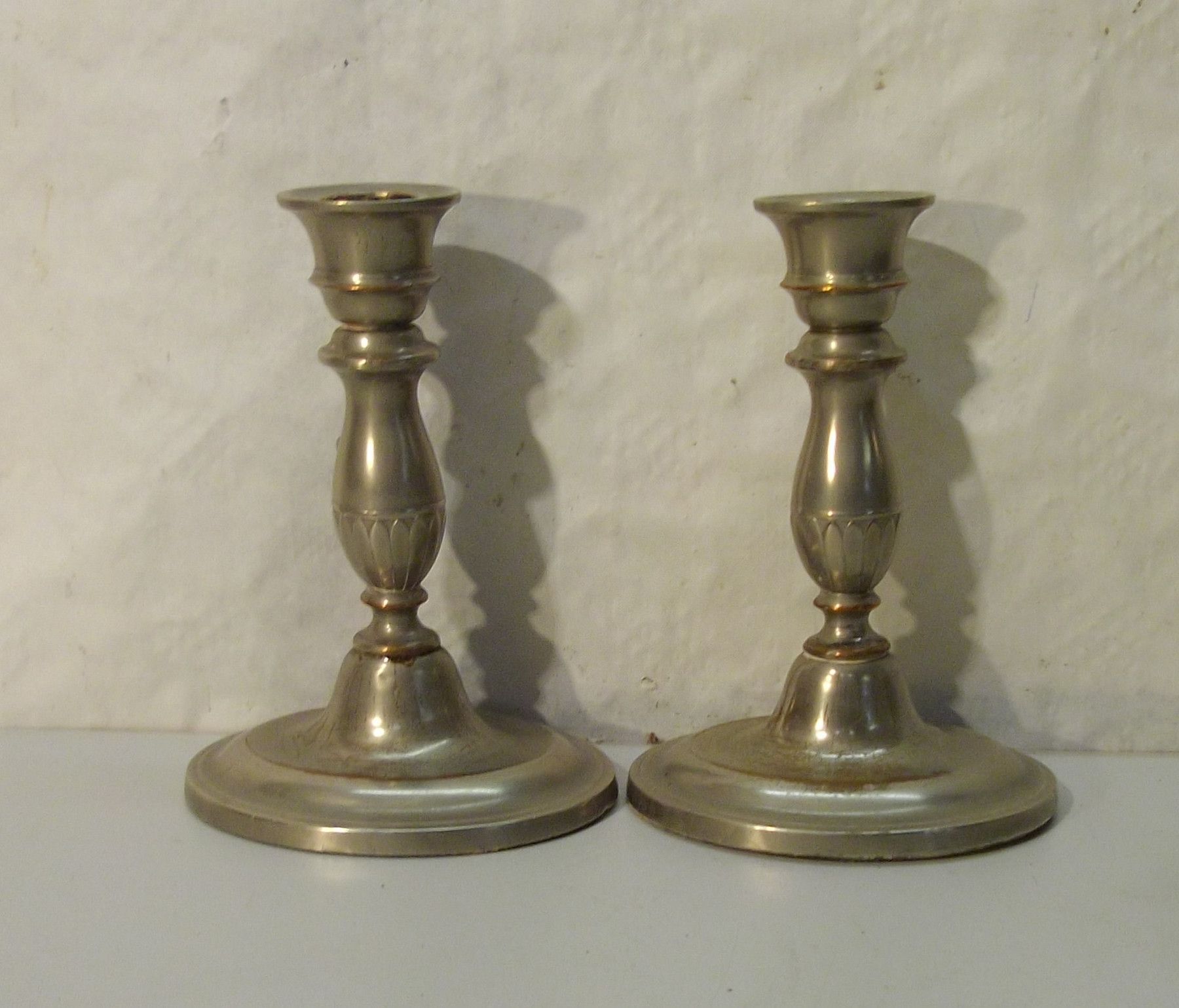 Kerzenhalter-Paar wohl um 1860 (Historismus). Ohne Marke. Kupfer vernickelt. Filz an der Unterseite. Maße: H 16 cm. Antikes am Deich - Inh: Oliver Kipp-Trense