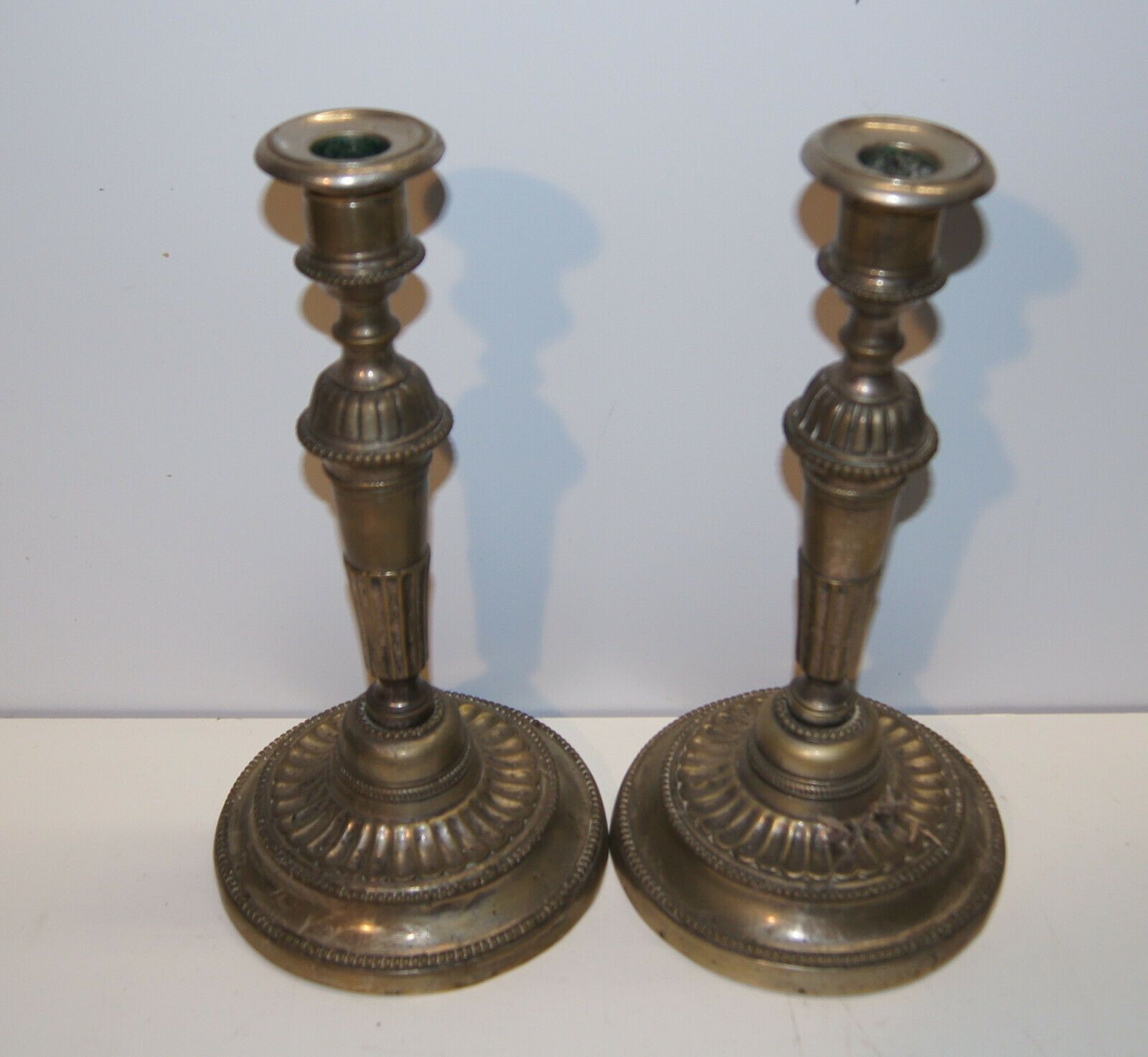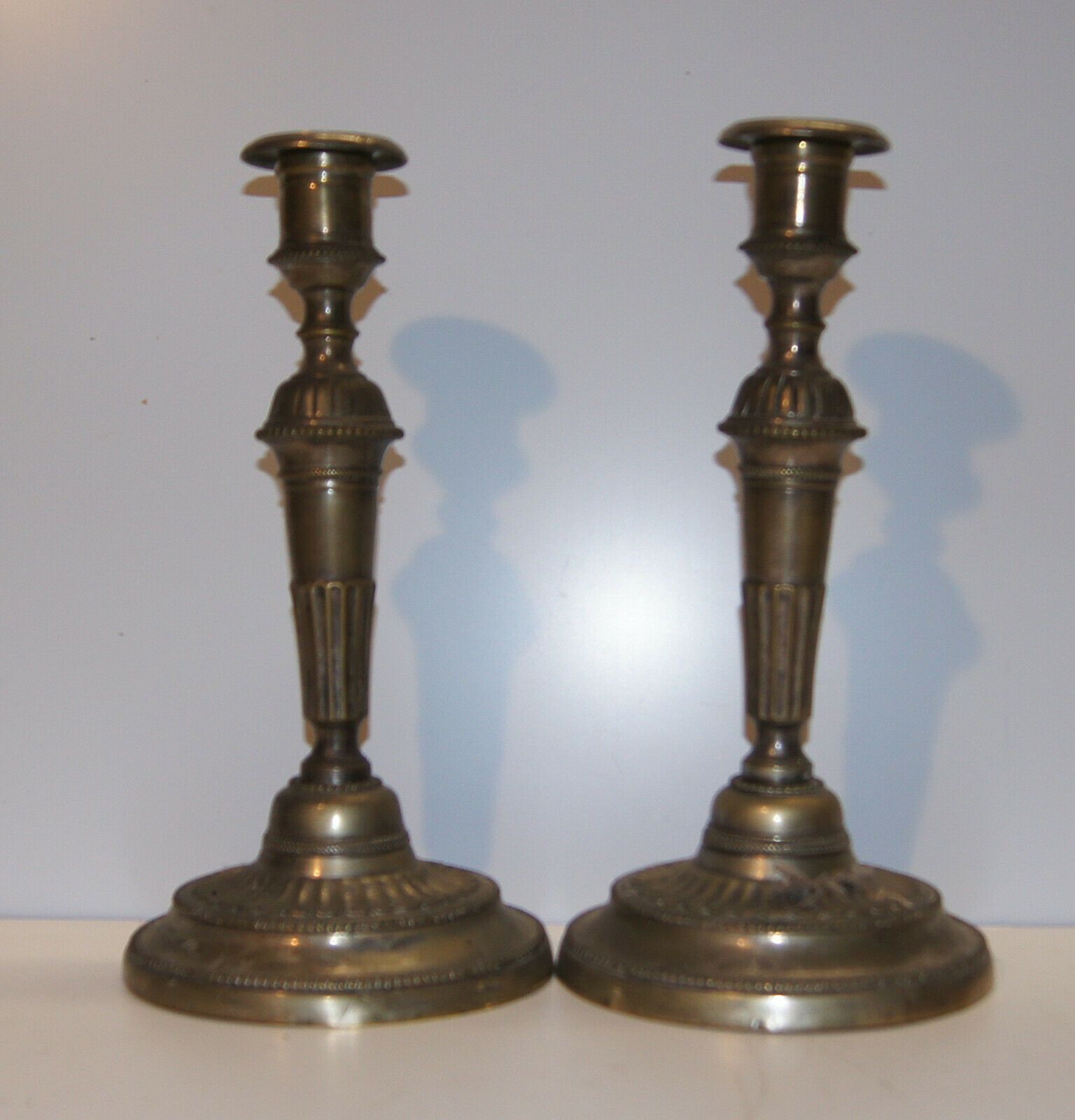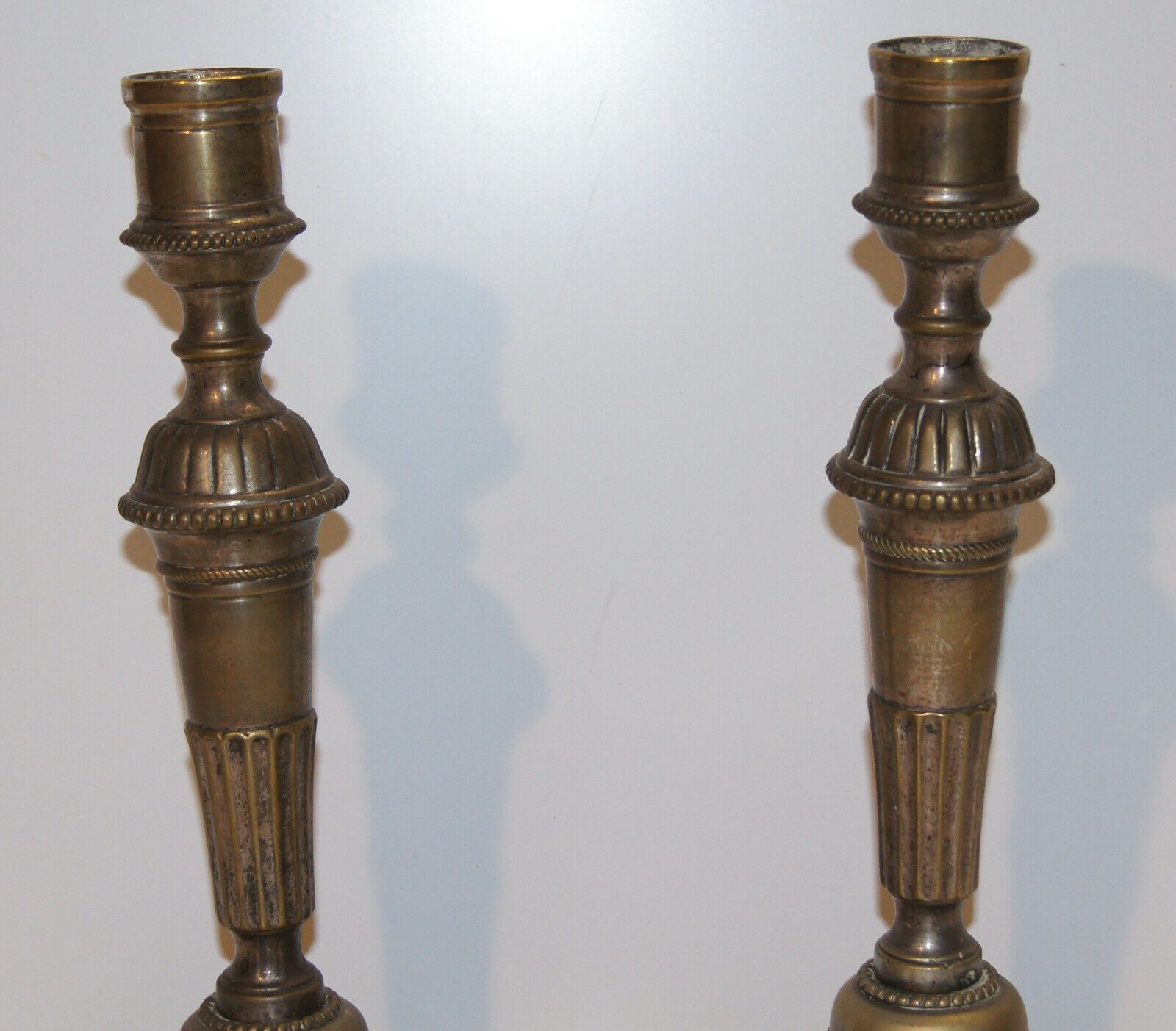 2 gleiche Kerzen-Leuchter um 1870. Kupfer versilbert. Ohne Marke Maße: H 27 cm. Ungeputzt. Antikes am Deich - Inh: Oliver Kipp-Trense