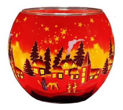 • Windlicht Winterzeit Teelicht Leuchtglas Teelichthalter Schnee Landschaft Dorf
