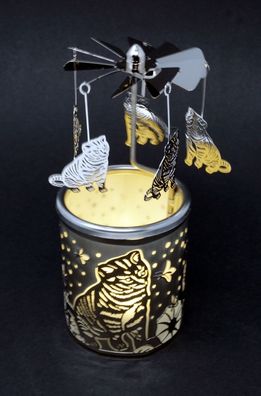 • Windlicht Karussell Kätzchen Glas Votivglas Leuchtglas Katze Teelichthalter