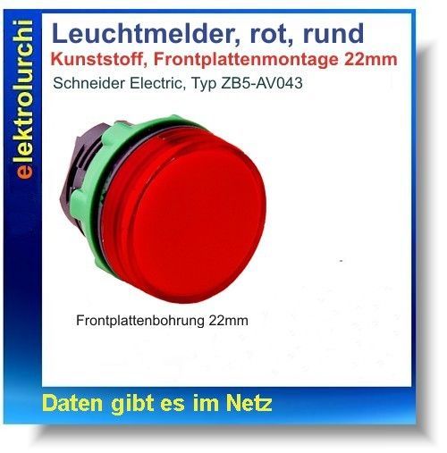 Sie bieten hier auf folgenden Artikel 1 Stück Leuchtmelder Frontelement rot, Schneider Electric Harmony ZB5-AV043 Leuchtmelder (wie abgebildet) aus der Serie Harmony von Schneider Electric Farbe Kappe: rot konvex glatt Außenmaße: 29,95mm Montageart: Frontplatte Frontplattenbohrung: 22.0mm Schutzart: