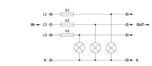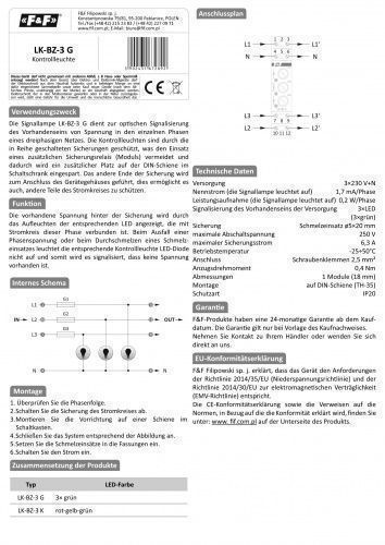 Leuchtmelder Signalleuchte 3 Phasen mit Sicherung 3 x grén F&F 2892